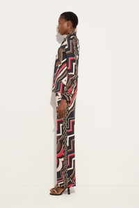 Comfortable yet sophisticated, these mid-rise trousers reinterpret the iconic Pucci jersey in a contemporary key. Crafted from twisted Lycra yarns to enhance the fabric's sheen, they offer a relaxed, lightweight fit that follows the lines of the body without constricting. The elasticated waistband ensures everyday comfort, while the gold and red Istrice print adds a graphic touch in perfect Pucci style. - Gold and Red - Main fabric: 95% viscose – 5% elastane - Mid-rise with elastic waistband - Straight cut - Comfortable, relaxed fit - Dry clean only - Made in Italy - ID: 5UJT305U727057