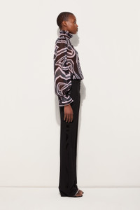 With a retro and sophisticated spirit, this blouse adds a touch of understated drama to the contemporary wardrobe. The high gathered collar and balloon sleeves with structured cuffs evoke 1960s elegance, while the lightness of the fabric creates a delicate play of transparencies. The black and pink Labirinto print, inspired by the enigma and wonder of Italian gardens, defines a graphic and enveloping look with hypnotic lines. - To offer you a unique Pucci garment, we use an all-over print that makes the product unrepeatable. Therefore, the pattern print may vary from the one displayed in the photo. - Black and Pink - 100% silk - Gathered high collar - Balloon sleeves with cuffs - Flowing, feminine fit - Dry clean only - Made in Italy - ID: 5URM455U792047