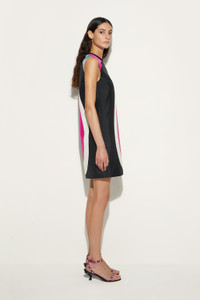 A mini-dress that plays with the perfect balance between elegance and character. The straight cut and high neck lend a sophisticated and timeless air, while the length that skims mid-thigh makes it fresh and dynamic, perfect for those who like to express their style with ease.The silk twill, with its slightly stiff structure, enhances the natural sheen and lightness of the fabric, offering a flawless fit. The finishing touch? The Maddalena print in black and fuchsia tones, a bold and vibrant pattern that adds personality to the look. - Black and fuchsia - Main fabric: 100% Silk - Lining: 67% Acetate, 33% Polyester - Straight cut - High neckline - Mini length - Maddalenaa print - Gently dry clean. - Made in Italy - ID: 5HRG085H890042 - The model is 177 cm tall and wears a 38 italian size.