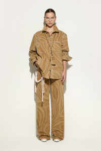 A classic revisited with the unique character of the Pucci world. This straight-cut jacket is a perfect blend of practicality and style, with its design reaching just below the waist and timeless details such as the chest pockets and flat collar.Enhanced by the taupe-colored Marmo wash, this garment gives a unique texture and a relaxed yet refined look. - To offer you a unique Pucci garment, we use an all-over print that makes the product unrepeatable. Therefore, the pattern print may vary from the one displayed in the photo. - Taupe - 100% cotton canvas - Straight cut - Length below the waist - Two chest pockets - Flat collar - Buttons along the opening - Marmo print - Gently wash max 30°C - Made in Italy - ID: 5HRC055H999A02 - The model is 178 cm tall and wears a 38 italian size.