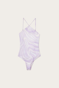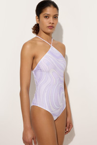 A sensual, sculptural design characterizes this one-piece swimsuit, defined by a deep V-neckline that elongates the figure. Made from stretch Lycra with UV protection, it is decorated with a Marmo print in a refined lavender color, reminiscent of the waves and reflective light of the Mediterranean. Perfect for those who love graphic, sophisticated elegance, even at the beach. - To offer you a unique Pucci garment, we use an all-over print that makes the product unrepeatable. Therefore, the pattern print may vary from the one displayed in the photo. - Lavender - Stretch Lycra - Deep V-neck - Fitted style - Hand wash - Made in Italy - ID: 5UMC305U775065