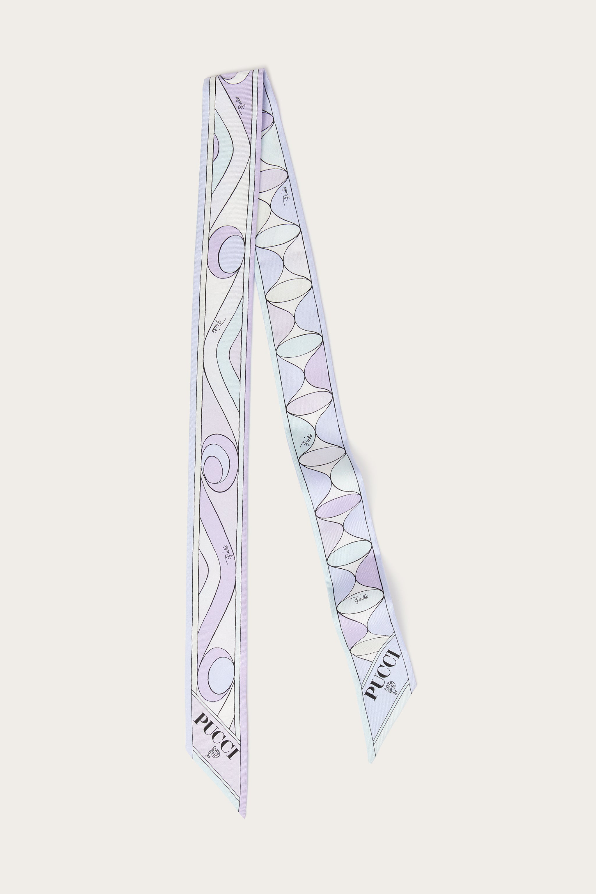 A versatile and refined accessory, perfect for adding a distinctive touch to any outfit. This silk twill scarf, featuring a unique combination of the Manuba and Moire prints, celebrates the art and energy of Pucci design. The lavender color adds originality, making it perfect for adding a touch of glamour to any look, from casual to sophisticated. - Lavender - Silk - Dimensions: 5x120 cm - Pointed edges - Mix of prints - Delicate dry clean. - Made in Italy - ID: 5UGB225UC052