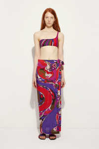 Inspired by the relaxed elegance of exotic destinations, this pareo skirt wraps around the body naturally thanks to its straight cut and deep slit along the entire leg. Made from pure lightweight cotton, it is embellished with a multicolored Orchidee print, a tribute to craftsmanship and the power of nature according to Pucci's vision. - To offer you a unique Pucci garment, we use an all-over print that makes the product unrepeatable. Therefore, the pattern print may vary from the one displayed in the photo. - Multicolor - 100% cotton - Straight cut - Pareo style with tie waist - Long slit along the leg - Machine washable at 30°C - Made in Italy - ID: 5URW015U734017