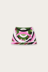 Inspired by the island in the Gulf of Naples and its geometry seen from above, the Vivara print returns in a vibrant pink and khaki version that captures the freshness of the sea and the dynamism of the waves. This pure silk miniskirt enhances the iconic motif with a clean, linear cut, while the inner lining ensures a comfortable and impeccable fit. - To offer you a unique Pucci garment, we use an all-over print that makes the product unrepeatable. Therefore, the pattern print may vary from the one displayed in the photo. - Pink and Khaki - 100% Silk - Lining: 67% acetate, 33% polyester - Side zip - Dry clean only - Made in Italy - ID: 5URV375U730P11