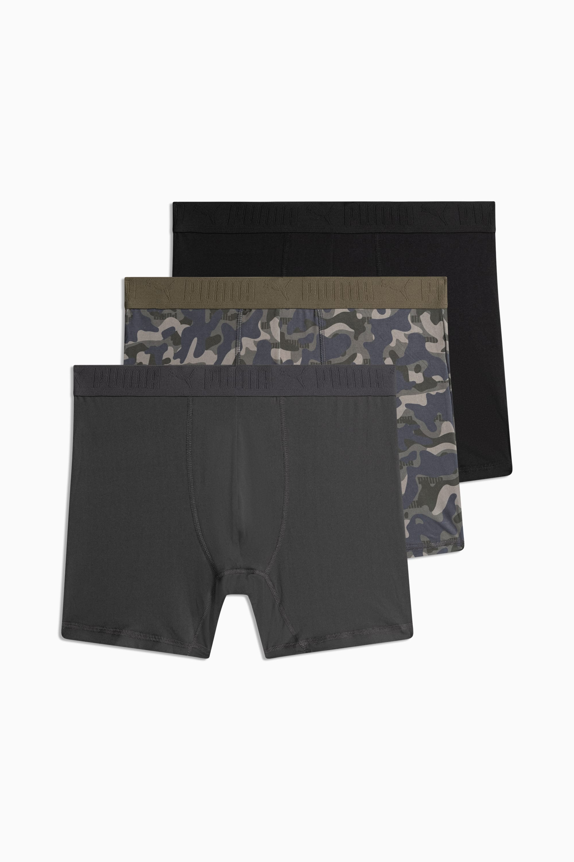 PRODUCT STORY Stay prepared for anything with this three-pack of ultra-soft boxers. Designed with a stretchy fit and breathable fabric, they keep you comfortable through every movement, from workouts to relaxation. Lightweight, supportive, and effortlessly cool—PUMA delivers all-day comfort with a touch of sporty energy. DETAILS - Style: 942958_01 - Color: OLIVE / BLACK - 3 Pack - Main material: Recycled polyester