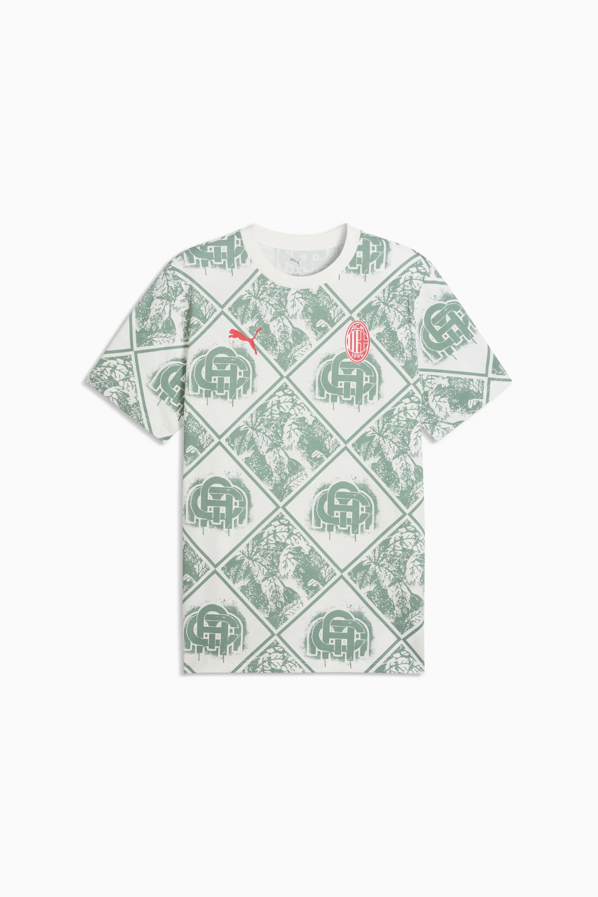PRODUCT STORY The FtblCulture collection is a fusion of fashion and football, celebrating AC Milan's heritage and timeless style. With bold designs, this tee brings together culture, loyalty, and performance. Wear it and show that your connection to your club goes beyond the pitch. FEATURES & BENEFITS - Made with at least 20% recycled cotton. DETAILS - Style: 784719_04 - Color: Warm White-Green Moon - Fit: Regular - Main material: Single jersey - Neck: Crew neck - Short sleeves - Club and PUMA branding details MATERIAL INFORMATION - Shell: 100% cotton - Rib: 75% cotton, 25% polyester