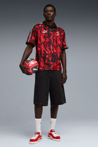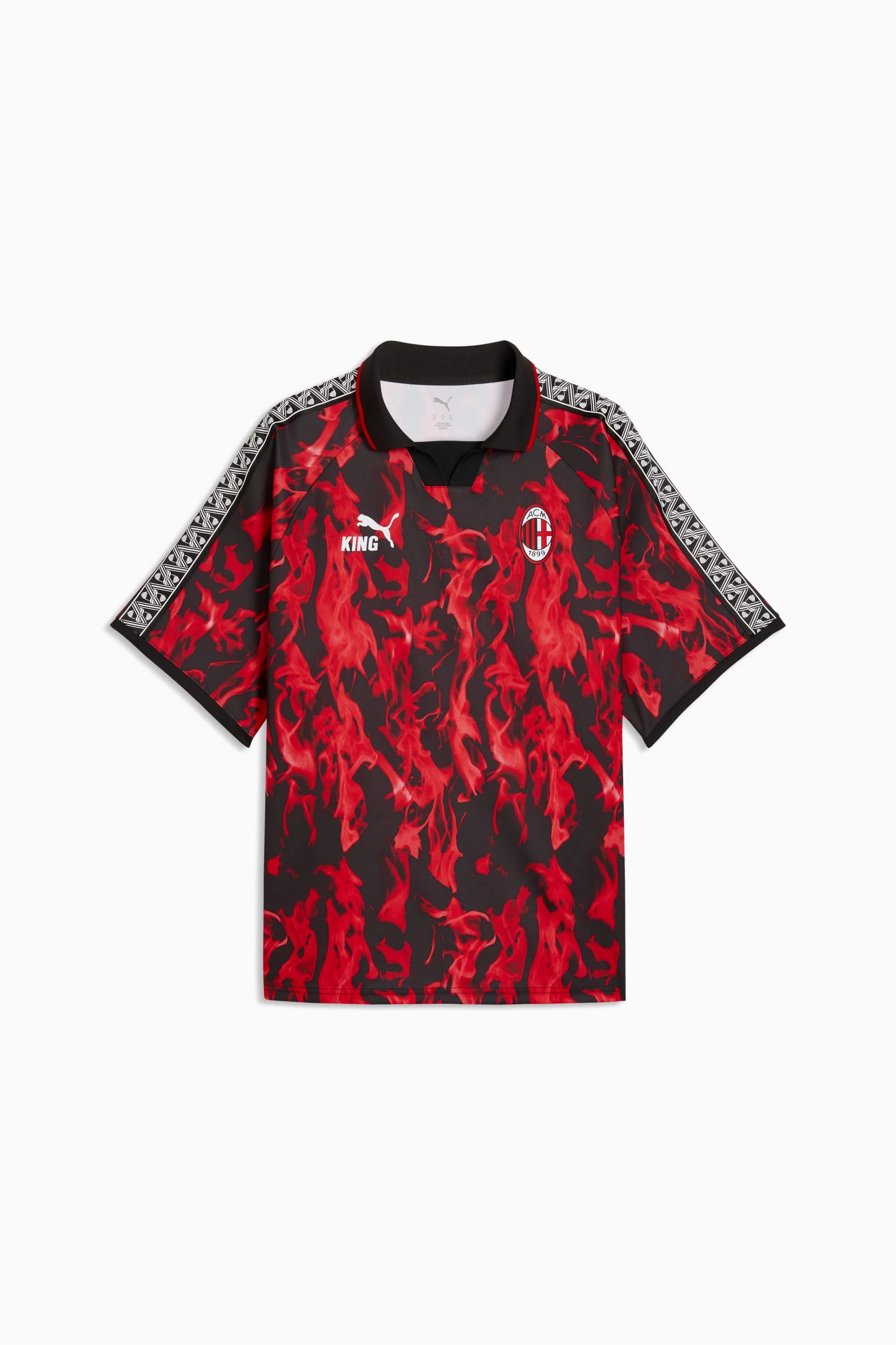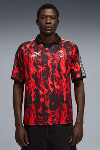 PRODUCT STORY This retro AC Milan jersey celebrates the legacy of the KING line, blending timeless elements with an archive-inspired aesthetic. It's a tribute to true royalty on and off the pitch. FEATURES & BENEFITS - Made with 100% recycled material excluding trims & decorations. DETAILS - Style: 784731_01 - Color: For All Time Red-PUMA Black - Fit: Relaxed - Main material type: Double pique - Neck: Collar - Short sleeves - Club and PUMA branding details MATERIAL INFORMATION - Trimming: 100% polyester - Shell: 100% polyester - Collar: 100% polyester - Rib: 100% polyester