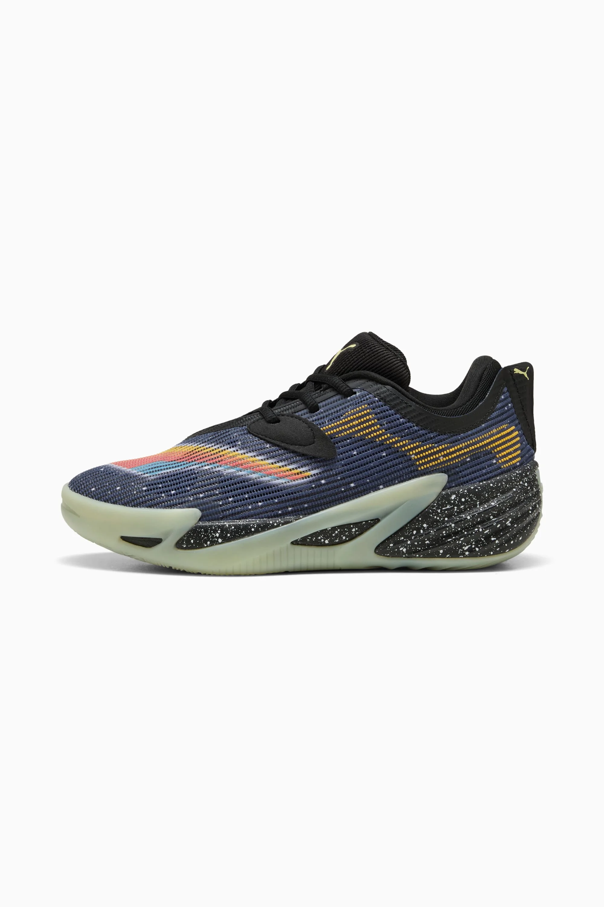 PRODUCT STORY We’ve teamed up with the beloved ‘80s classic E.T. the Extra-Terrestrial for a cosmic collab blending court-ready tech with big screen nostalgia. This version of the All-Pro NITRO™ 2 is transformed with a space-inspired design, a starry midsole, and touches from the film like the silhouette of E.T. and Elliott on the bike. Powered by NITROFOAM™ cushioning and elite design, this pair is ready to take your game to another galaxy. FEATURES & BENEFITS - The upper of this shoe is made with at least 20% recycled materials - NITROFOAM™: Advanced nitrogen-infused foam designed to provide superior responsiveness and cushioning in a lightweight package DETAILS - Style: 312313_01 - Color: Elektro Blue-PUMA Black - Width: Regular - Toe Type:Rounded - Fastener: Laces - Heel type: Flat - PUMA branding details - Upper: Textile; Lining: Textile; Sockliner: Textile: Outsole: Rubber; Midsole: Synthetic MATERIAL INFORMATION - Midsole: 100% Synthetic - Sockliner: 100% Textile - Outsole: 100% Rubber - Upper: 85% Textile, 15% Synthetic - Lining: 100% Textile