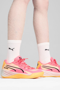 PRODUCT STORY The All-Pro NITRO™ 2 brings an innovative approach to the basketball footwear space with a full NITROFOAM™ drop-in midsole and an engineered mesh upper. This evolution of our original All-Pro shoe is sleek, fast paced and ready to perform at the highest level. FEATURES & BENEFITS - NITROFOAM™: Advanced nitrogen-infused foam designed to provide superior responsiveness and cushioning in a lightweight package DETAILS - Style: 310392_07 - Color: Sunset Glow-Sun Stream-PUMA Black - Mesh upper with multi-zoned materials for targeted support, breathability and comfort - NITROFOAM™ drop-in midsole with EVA rim - Rubber outsole with anti-slip traction pattern - Regular fit - PUMA branding details MATERIAL INFORMATION - Midsole: 100% Synthetic - Sockliner: 100% Textile - Outsole: 100% Rubber - Upper: 94% Textile, 6% Synthetic - Lining: 100% Textile