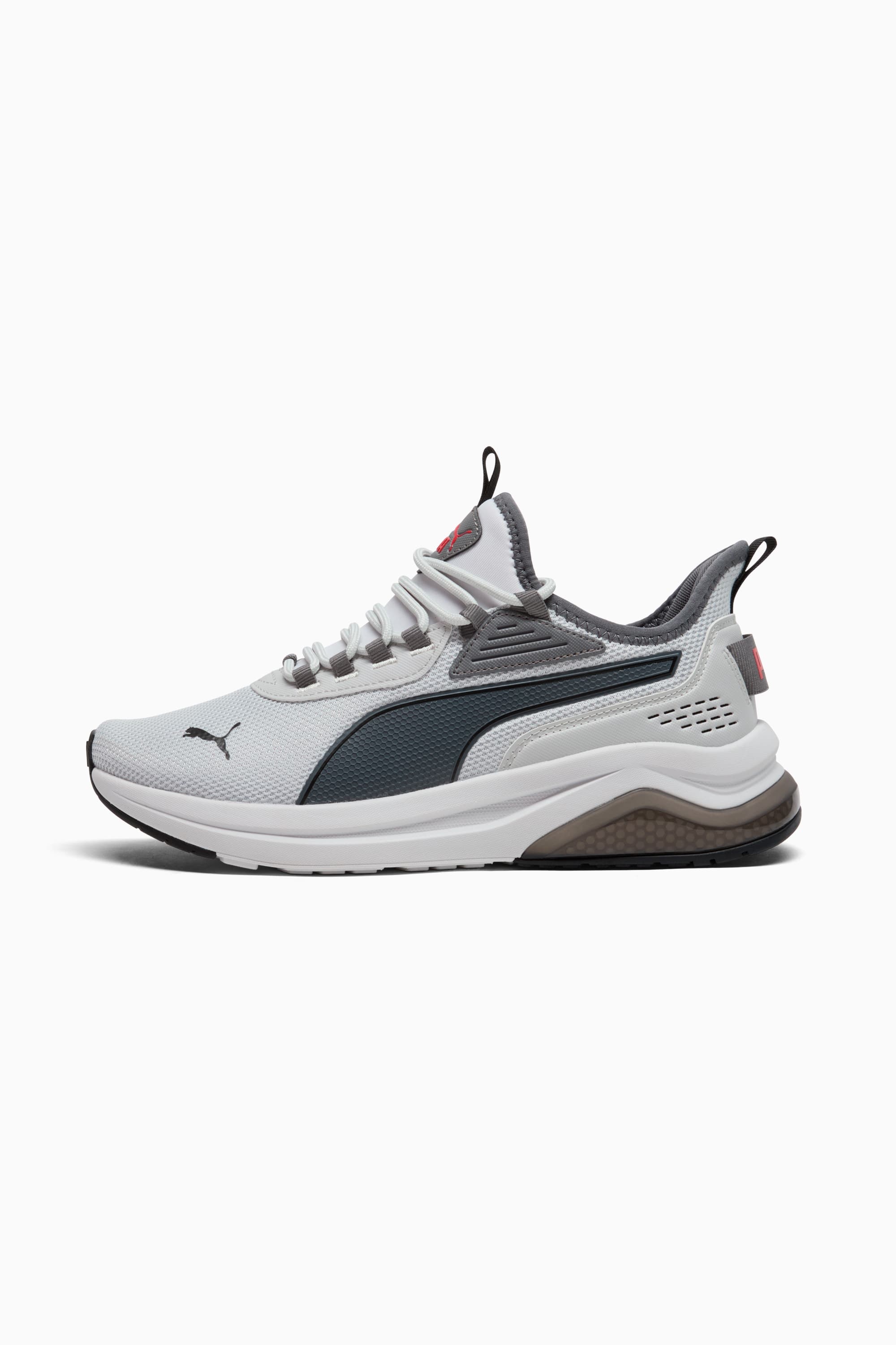 PRODUCT STORY Introducing the Amplifier. In the Amplifier Sneakers, you can enjoy performance-worthy design with every step of day-to-day life. Featuring an athletic-inspired silhouette that now has a faster more modern feel. High-tech additions like the heel bubble in the midsole, bring comfort and next-level cushioning to the table. With a mesh upper, supportive caging, and fluid lines throughout, they'll give you a competitive edge in the style game. FEATURES & BENEFITS - SOFTFOAM+: Step-in comfort sockliner designed to provide soft cushioning thanks to its extra thick heel DETAILS - Style: 396867_30 - Color: Cool Light Gray-Cool Dark Gray-PUMA Black - Knit mesh upper - Visible tech outsole - Rubber sole - Best for: neutral pronation