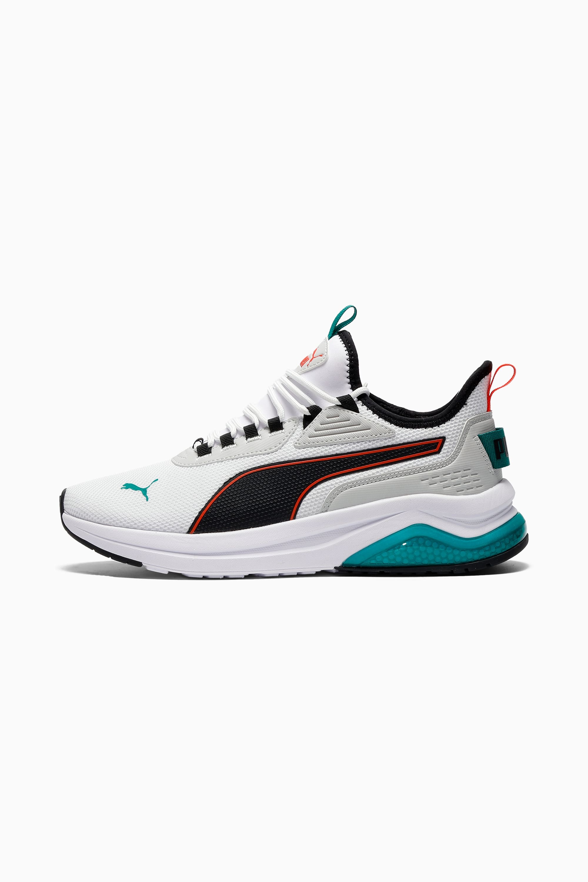 PRODUCT STORY Introducing the Amplifier. In the Amplifier Sneakers, you can enjoy performance-worthy design with every step of day-to-day life. Featuring an athletic-inspired silhouette that now has a faster more modern feel. High-tech additions like the heel bubble in the midsole, bring comfort and next-level cushioning to the table. With a mesh upper, supportive caging, and fluid lines throughout, they'll give you a competitive edge in the style game. FEATURES & BENEFITS - SOFTFOAM+: Step-in comfort sockliner designed to provide soft cushioning thanks to its extra thick heel DETAILS - Style: 396867_41 - Color: PUMA White-PUMA Black-Fierce Red - Knit mesh upper - Visible tech outsole - Rubber sole - Best for: neutral pronation