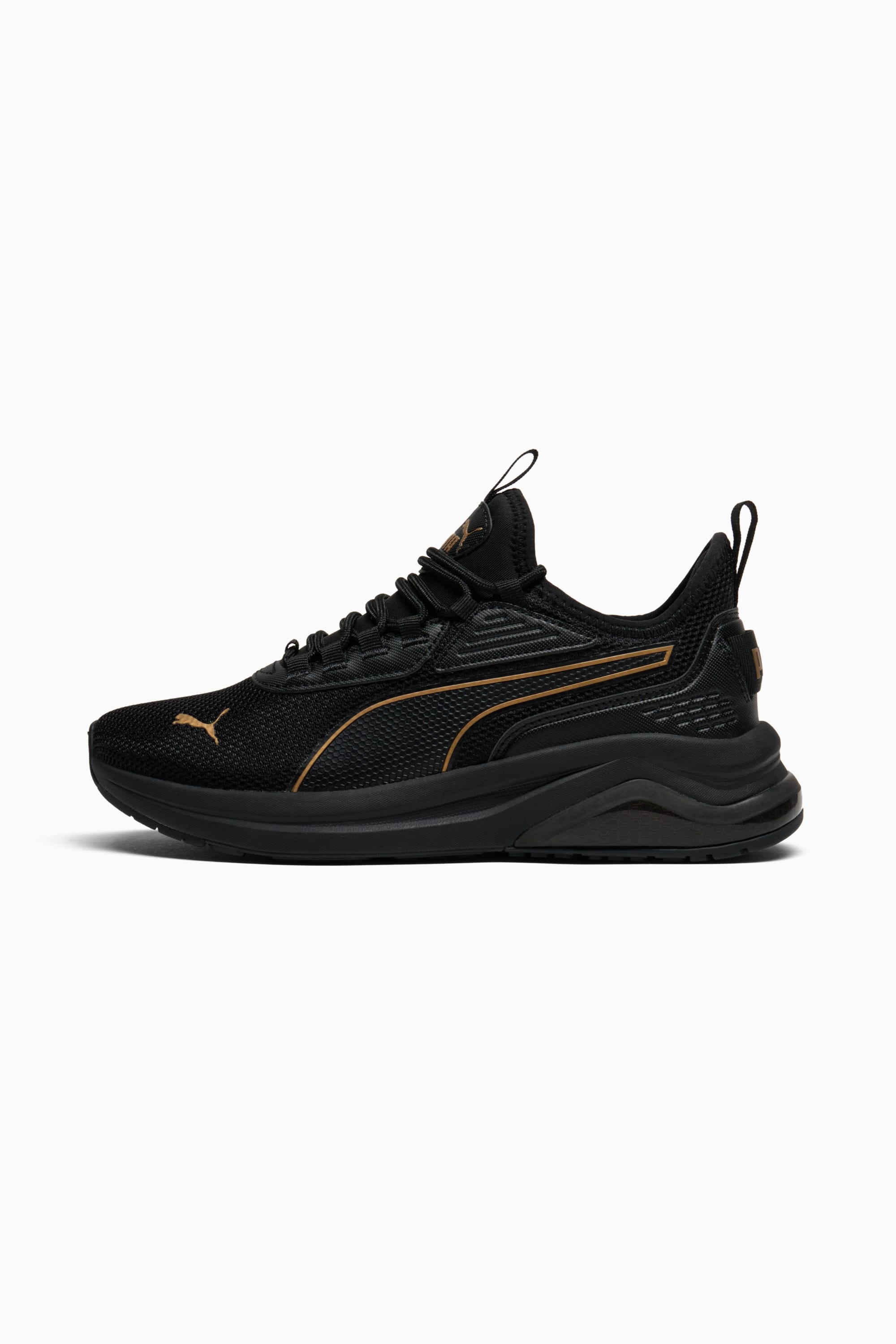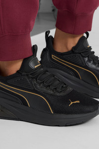 PRODUCT STORY Unleash your potential with these athletic-inspired PUMA kicks. Featuring a knit-like mesh upper, neoprene bootie construction, and a synthetic leather quarter caging, they offer a modern edge. The visible technology heel bubble and SOFTFOAM+ sockliner ensure every step feels cushioned and energized. FEATURES & BENEFITS - SOFTFOAM+: Step-in comfort sockliner designed to provide soft cushioning thanks to its extra thick heel DETAILS - Style: 397681_12 - Color: PUMA Black-PUMA Gold - Regular width - Textile upper - Lace closures - Rubber outsole - PUMA branding details - Pronation: Neutral