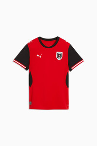 PRODUCT STORY This home kit feels like home. With a design rooted in the country’s adventurous spirit, the Austria Home Kit pays tribute to the team’s fans and is ready to represent on the world’s biggest stage. The Replica jersey pairs the same match-worn look with a casual silhouette, details, and materials, ideal for both game day and everyday wear. FEATURES & BENEFITS - MOISTURE MANAGEMENT: Technical dryCELL fabrics wick moisture away from the skin to help keep you dry and comfortable - As part of the RE:FIBRE program, this garment is made of at least 95% recycled material from textile waste and other used materials. DETAILS - Style: 783201_01 - Color: PUMA Red-PUMA Black - Fit: Regular - Main material Double-face jacquard - Neck: Crew neck - Short sleeves - Team and PUMA branding details - Mesh panels for ventilation MATERIAL INFORMATION - Inserts: 100% polyester - Shell: 100% polyester - Rib: 100% polyester - Sleeve Cuff: 97% polyester, 3% elastane