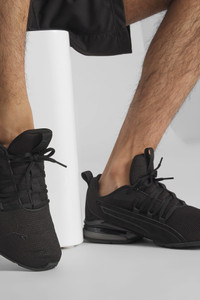 PRODUCT STORY Combining progressive design with the functionality of foam, our Axelion NXT feature extra-wide lacing, enhanced support, and bold, athletic branding. DETAILS - Style: 376966_02 - Color: Puma Black-CASTLEROCK - Low boot - TPU shank for added support - EVA heel piece for enhanced comfort - PUMA Cat Logo on tongue and lateral toe - PUMA Formstrip on medial and lateral sides MATERIAL INFORMATION - Midsole: 100% Synthetic - Sockliner: 100% Textile - Outsole: 100% Rubber - Upper: 63.44% Textile, 36.56% Synthetic - Lining: 100% Textile