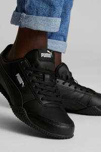 Bella is back and better than ever. This season, we're reviving the retro low-profile silhouette, inspired by classic designs from the PUMA Archives. Featuring a sleek synthetic leather upper and iconic branding details, this simple, understated kick is a classic in the making. DETAILS - Style: 380663_01 - Color: Puma Black-Puma Black - Low profile silhouette - Sleek synthetic leather upper - Full lace closure - EVA midsole for lightweight cushioning - Rubber outsole provides durable grip and traction - PUMA Formstrip overlay at side - Metallic PUMA No.2 Logo at lateral side - Woven PUMA No.1 Logo label at tongue MATERIAL INFORMATION - Sockliner: 100% Textile - Outsole: 100% Rubber - Upper: 98.32% Synthetic, 1.68% Textile - Lining: 100% Textile
