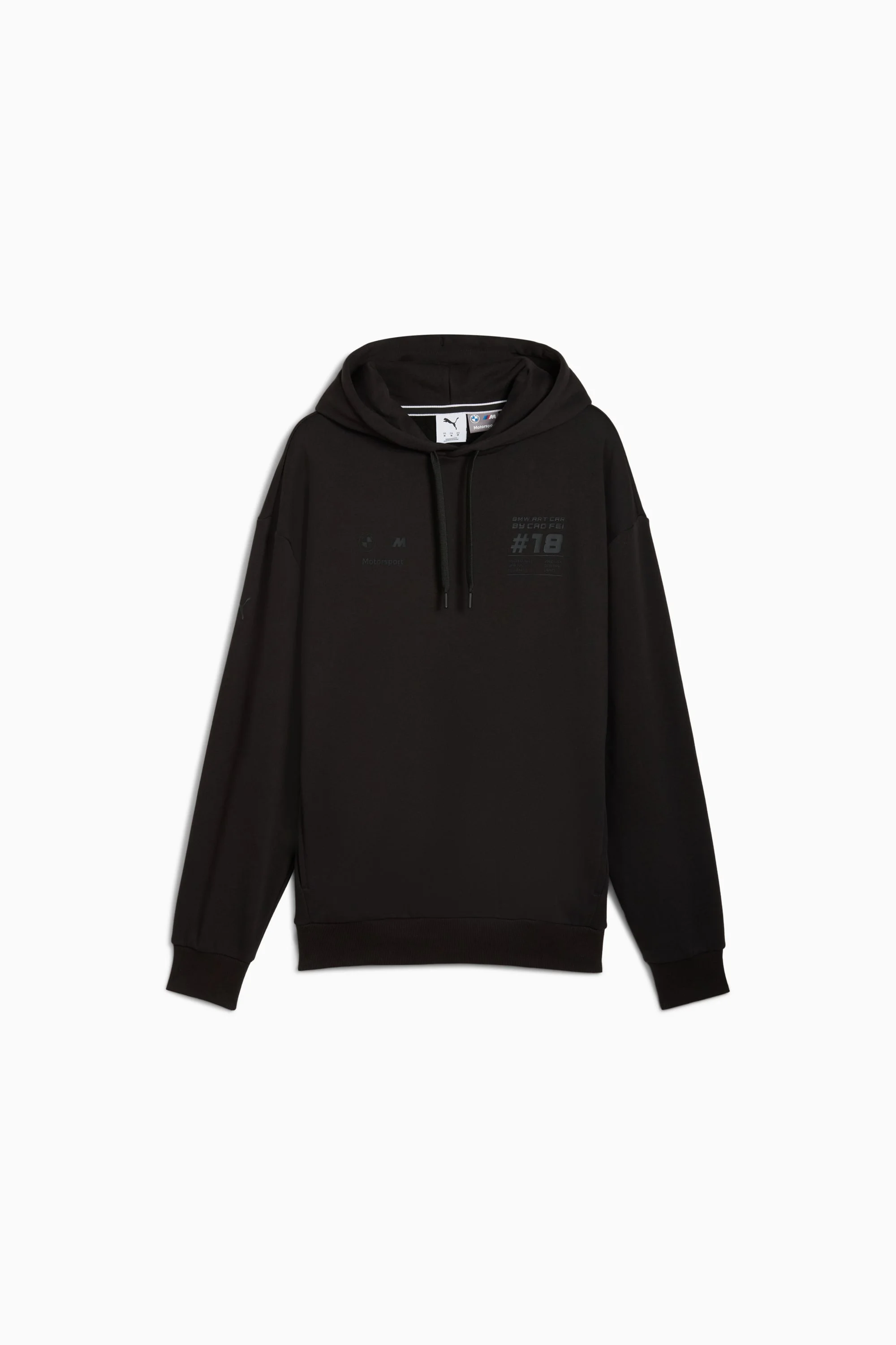 PRODUCT STORY PUMA x BMW M MOTORSPORT returns with a collection inspired by the latest evolution of the BMW M4 GT4 EVO. Featuring graphics drawn from the car’s cutting-edge design and refreshed livery, this collection pays tribute to speed, precision, and innovation that continue to define this icon. FEATURES & BENEFITS - Made with at least 50% recycled materials. DETAILS - Style: 633181_01 - Color: PUMA Black - Fit: Relaxed - Main material type: Fleece - Hooded - Long sleeves - Dropped shoulder - Ribbed cuffs and hem - Length: Regular - Pockets: Kangaroo Pocket MATERIAL INFORMATION - Hood Lining: 66% cotton, 34% polyester - Upper Pocket Bag: 100% cotton - Shell: 66% cotton, 34% polyester - Rib: 97% cotton, 3% elastane