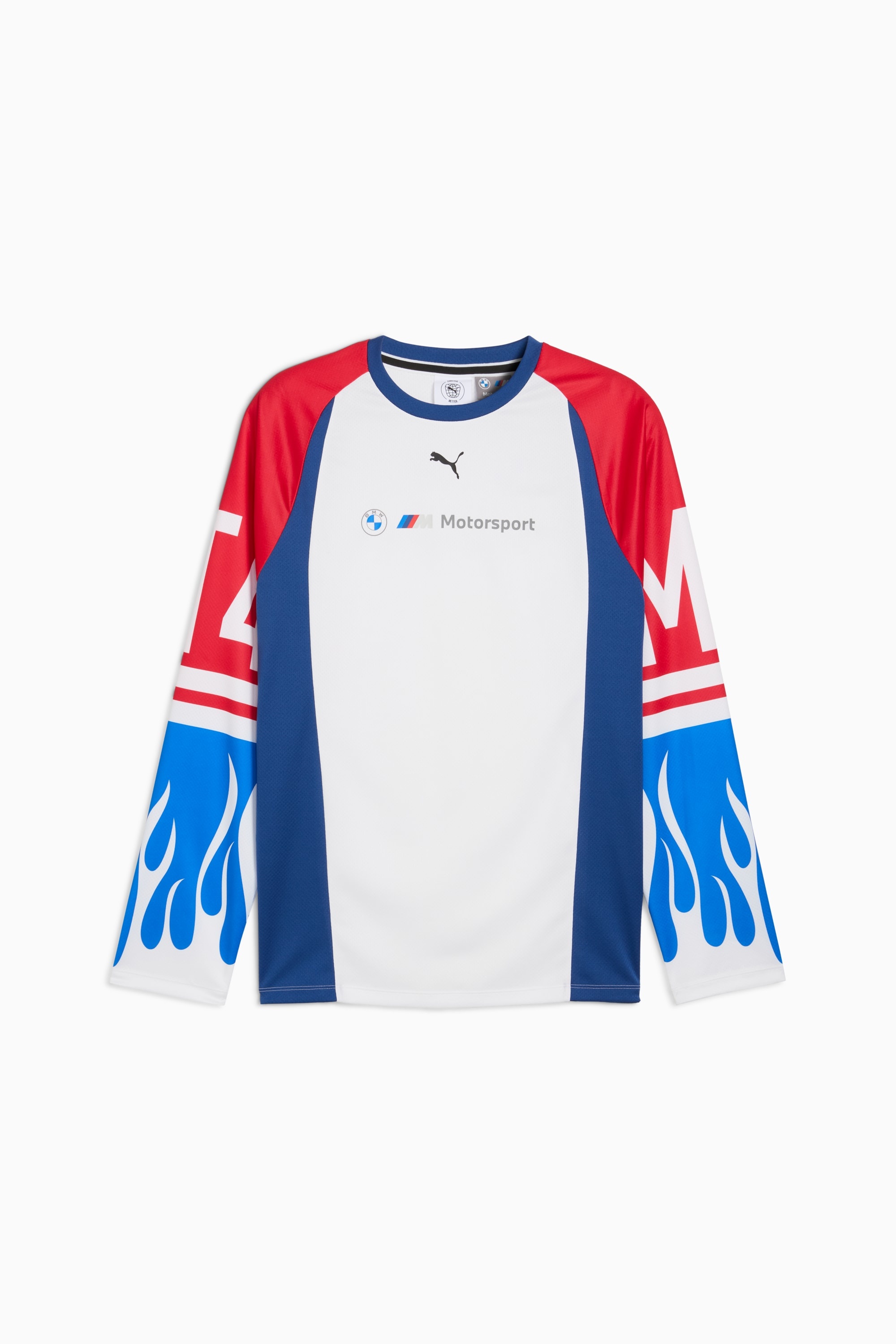 PRODUCT STORY PUMA x BMW M MOTORSPORT returns with a collection inspired by the latest evolution of the BMW M4 GT4 EVO. Featuring graphics drawn from the car’s cutting-edge design and refreshed livery, this collection pays tribute to speed, precision, and innovation that continue to define this icon. FEATURES & BENEFITS - As part of the RE:FIBRE program, this garment is made of at least 95% recycled material from textile waste and other used materials. DETAILS - Style: 632577_04 - Color: Pro Blue-M Color - Fit: Relaxed - Main material type: Double face jacquard - Neck: Crew neck - Long sleeves - Length: Regular MATERIAL INFORMATION - Shell: 100% polyester - Collar: 100% polyester