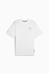 PRODUCT STORY Introducing our new BMW M Motorsport collection! Crafted from high-quality materials, each piece is a fusion of comfort, style and Motorsport graphics, Inspired by the BMW GT4 & CSL our designs evoke the pulse of urban life. Whether you are hitting the streets or exploring the city, our attire isn't just clothing - it is an expression. FEATURES & BENEFITS - Made with at least 20% recycled cotton DETAILS - Style: 630693_02 - Color: PUMA White - Oversized fit - Main material: Single jersey - Regular length - Crew neck - Short sleeves - BMW M Motorsport branding details - PUMA branding details MATERIAL INFORMATION - Shell: 100% cotton - Collar: 70% cotton, 30% polyester