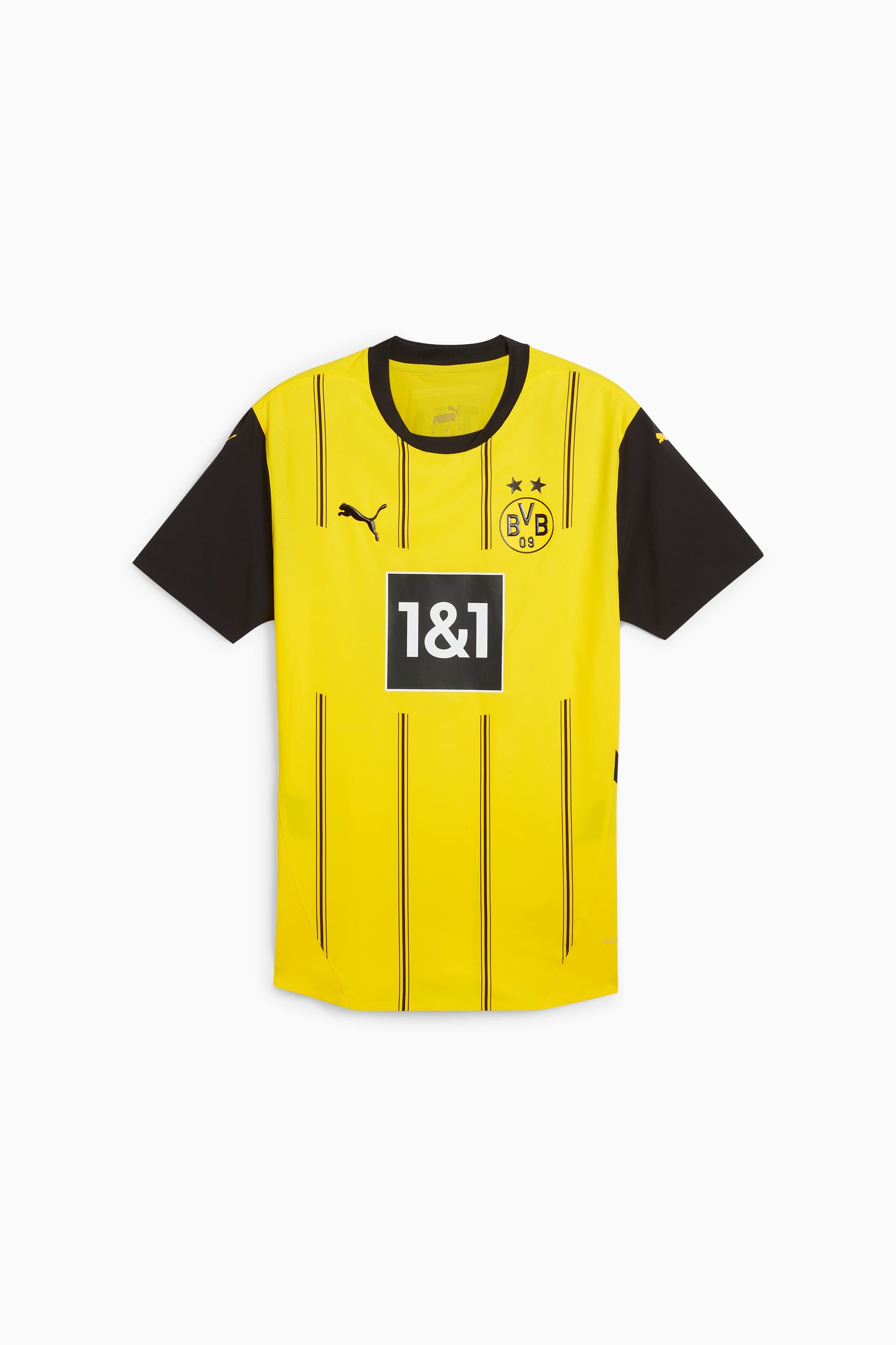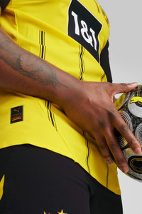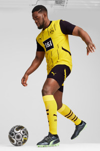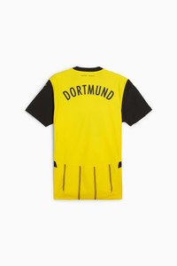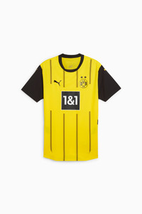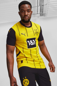 PRODUCT STORY Introducing the latest in a long line of Black & Yellow classics. Staying true to the club’s heritage, the 24/25 BVB Home Kit combines signature colors with a pinstriped design in a way that embodies the essence of Borussia Dortmund, yesterday, today, and forever. Authentic version is what Haller and team wear on the pitch. It’s constructed with PUMA’s ULTRAWEAVE fabric and an athletic fit for elite-level performance. FEATURES & BENEFITS - dryCELL: Performance technology designed to wick moisture from the body and keep you free of sweat during exercise - ULTRAWEAVE: Ultra-light, engineered fabric with a structured, 4-way stretch that reduces weight and friction. Built for athletes looking to increase speed and strength - Made with 100% recycled material excluding trims & decorations DETAILS - Style: 774945_01 - Color: Faster Yellow-PUMA Black - Performance Fit - 78 gsm, Dobby with ULTRAWEAVE fabric on front, back panel and sleeves - Mesh inserts - Crew neck - Short sleeves - As worn by the players - Official team branding MATERIAL INFORMATION - INSERTS: 100% polyester - SHELL: 100% polyester - RIB: 100% polyester