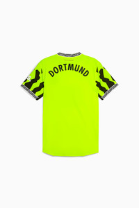 PRODUCT STORY Celebrate the legacy of Borussia Dortmund with the Authentic 94/95 Bundesliga jersey. Honoring 30 years since the unforgettable title win, this jersey combines modern performance features with retro design elements inspired by the original kit. A must-have for fans looking to relive a historic season in true style. FEATURES & BENEFITS - dryCELL: Performance technology designed to wick moisture from the body and keep you free of sweat during exercise - ULTRAWEAVE: Ultra-light, engineered fabric with a structured, 4-way stretch that reduces weight and friction. Built for athletes looking to increase speed and strength - Made with at least 90% recycled materials DETAILS - Style: 777596_04 - Color: Yellow Alert-PUMA Black - Slim fit - Main material: Dobby - Regular length - V-neck construction and flat-knit cuffs - Short sleeves - Mesh curved side panels - Small mesh side inserts crossing side panels - Borussia Dortmund crest on the chest - PUMA Cat logo on the chest MATERIAL INFORMATION - INSERTS: 100% polyester - TRIMMING: 82% polyester, 18% elastane - SHELL: 100% polyester - RIB: 97% polyester, 3% elastane