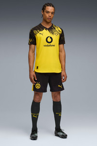 PRODUCT STORY It all starts with Black and Yellow. One voice becomes hundreds, hundreds become thousands, until the whole stadium is vibrating. The 25/26 BVB Home Kit brings that energy to the surface with a classic yellow base and distorted black graphics across the chest. Because everyone who’s ever been to a BVB home match knows these aren’t just colors: they’re The Loudest Colors in Football. FEATURES & BENEFITS - Made with 100% recycled material, excluding trims and decorations - LIGHT: Engineered ULTRAWEAVE fabric reduces weight and friction - COMFORT: dryCELL sweat-wicking technology designed to keep you dry and comfortable DETAILS - Style: 780087_01 - Color: Faster Yellow-PUMA Black - Short sleeve - V-neck - Slim fit - Mesh shoulder panel - BVB badge on left chest - BVB sponsor logo on front panel MATERIAL INFORMATION - Inserts: 100% polyester - Shell: 100% polyester - Rib: 100% polyester