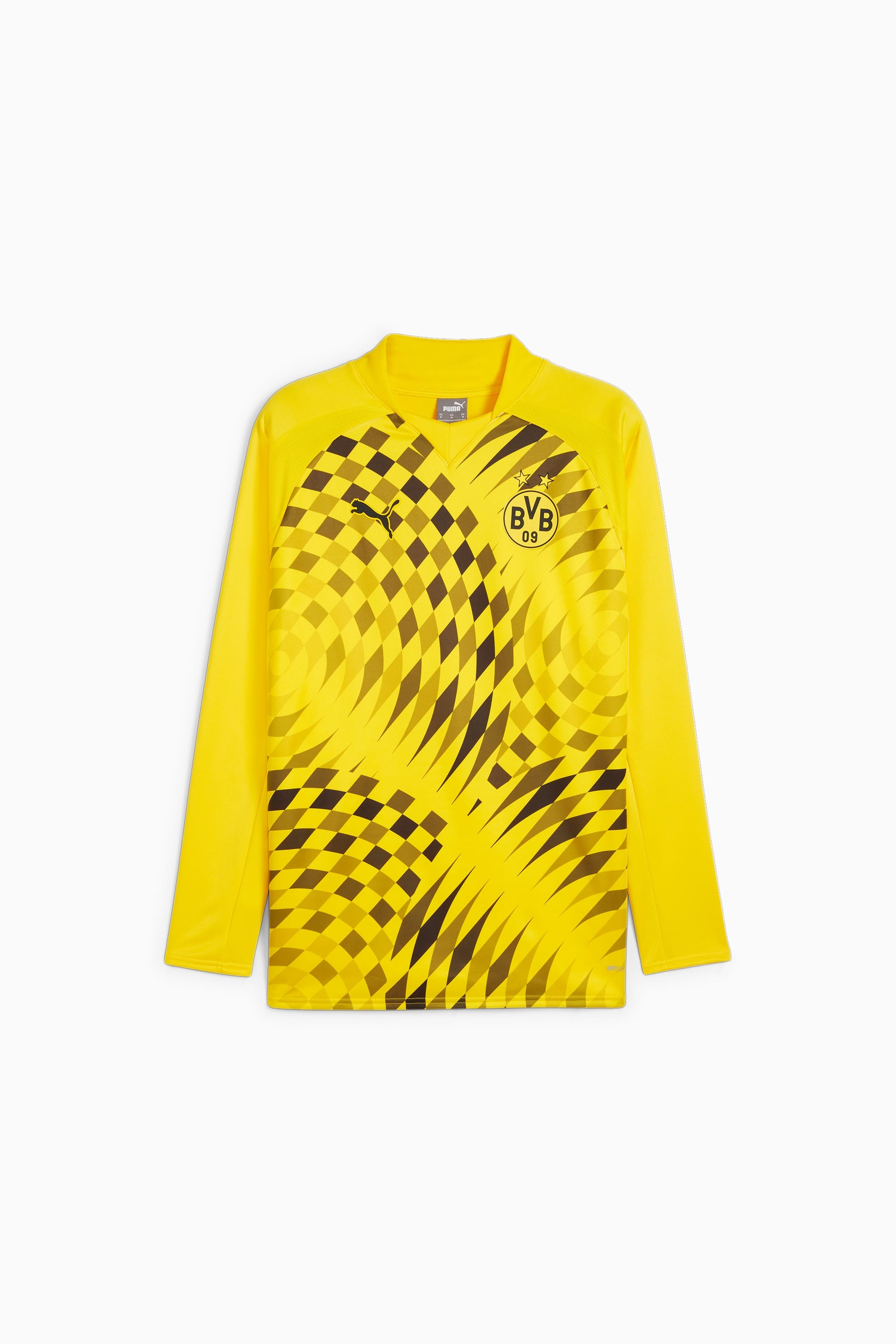 PRODUCT STORY Channel the BVB spirit, whether you're cheering on the Schwarzgelben or making your own mark on the pitch. This pro-fit shirt is embellished with an authentic club crest and infused with high-performance details to have you ready for the match. FEATURES & BENEFITS - Made with 100% recycled material excluding trims & decorations - dryCELL: Performance technology designed to wick moisture from the body and keep you free of sweat during exercise DETAILS - Style: 774201_01 - Color: Cyber Yellow-PUMA Black - Pro fit - 235 gsm, French terry material - Crew neck - Long sleeves - Printed graphic - Official team branding MATERIAL INFORMATION - INSERTS: 100% polyester - SHELL: 100% polyester - RIB: 97% polyester, 3% elastane