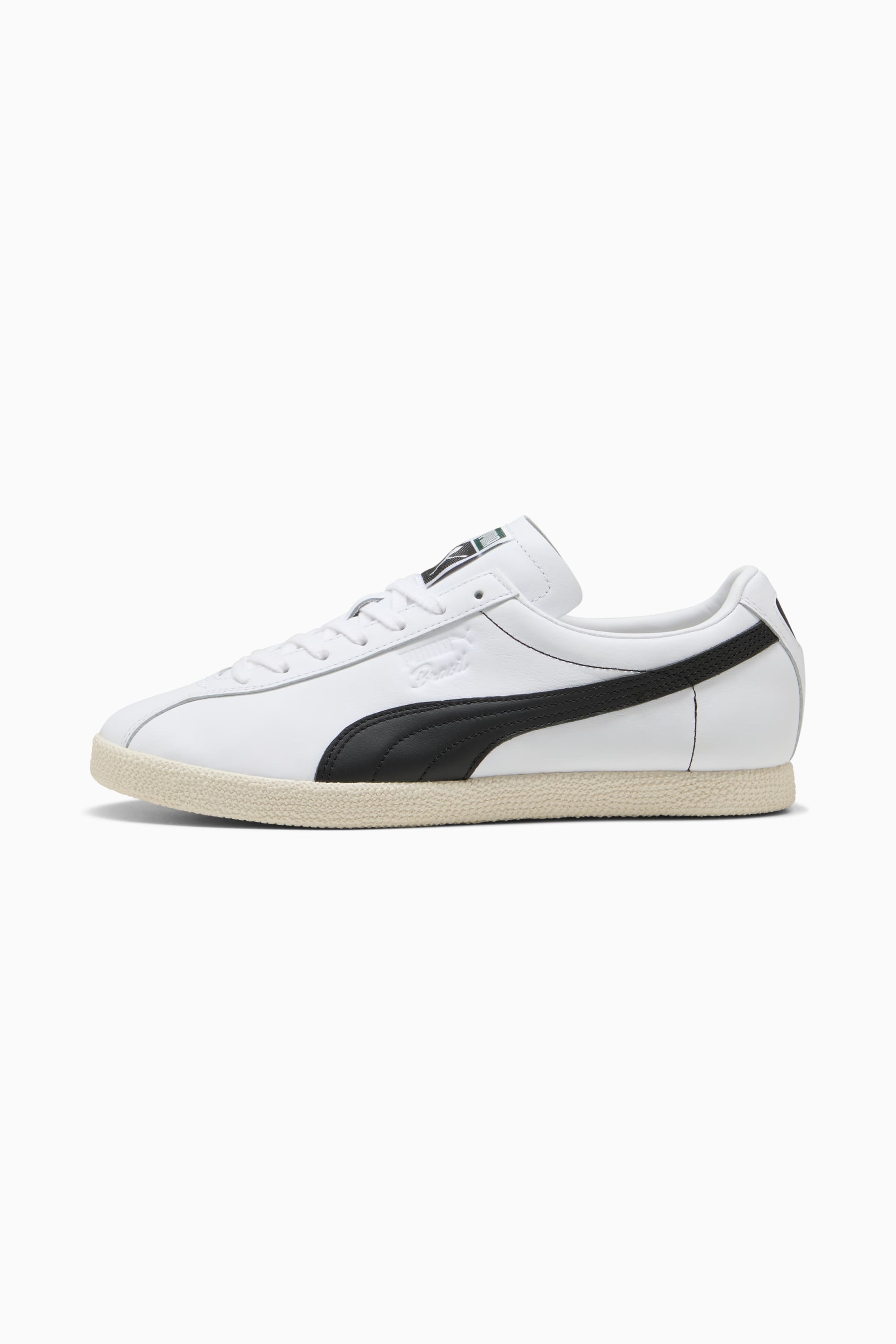 PRODUCT STORY Channel the spirit of Brazil with these sneakers. Originally created in the 70s for Brazil's greatest footballing hero, these iconic kicks are crafted with premium leather and feature a classic cupsole silhouette. The OrthoLite® insole and breathable lining ensure every step feels legendary. DETAILS - Style: 401049_01 - Color: PUMA White-PUMA Black-Frosted Ivory - Regular width - Leather upper - Lace closure - Canvas lining - OrthoLite® insole - Rubber outsole - PUMA branding details MATERIAL INFORMATION - Sockliner: 100% Textile - Outsole: 100% Rubber - Upper: 100% Leather - cow - Lining: 69.52% Textile, 30.48% Synthetic