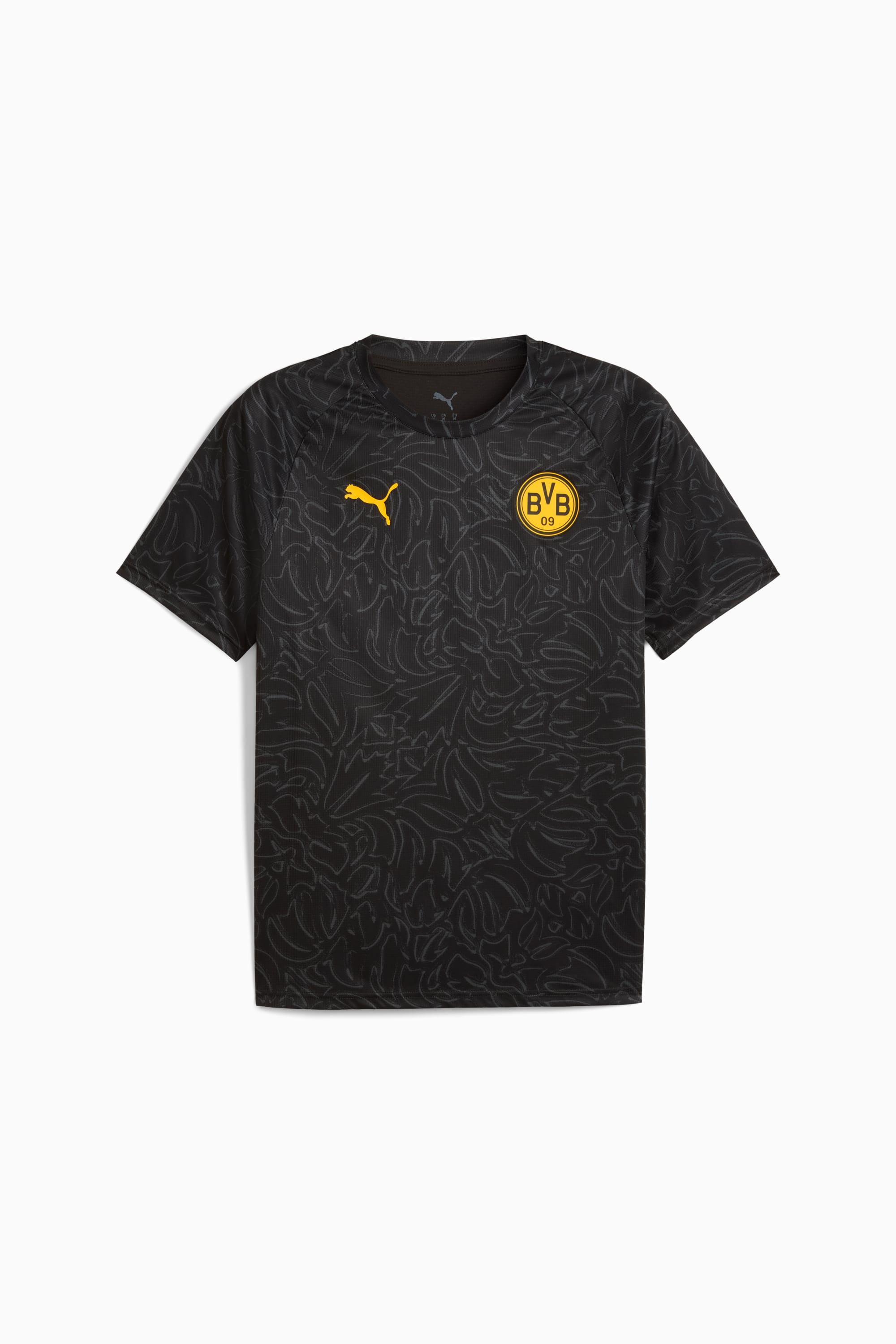 PRODUCT STORY The 25/26 warm-up collection blends the club's iconic style with performance-focused design. Whether you're preparing for game day or showing your loyalty in daily life, this collection lets you represent the club's colors just like your favorite players. From practice to the streets, stay comfortable, stylish, and ready for action. FEATURES & BENEFITS - dryCELL: Highly functional materials draw sweat away from your skin and help keep you dry and comfortable during exercise - Made with 100% recycled material excluding trims and decorations DETAILS - Style: 781685_10 - Color: PUMA Black-Yellow Sizzle - Worn by the players during the 25/26 season - Fit: Slim - Main material: Pique - Neck: Crew neck - Short sleeves - Length: Regular - Club and PUMA branding details MATERIAL INFORMATION - Shell: 100% polyester