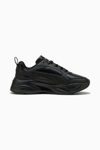 PRODUCT STORY The PUMA Cassia Sneakers are for those who move with confidence and embrace effortless style. With a modern design and a touch of boldness, these sneakers make a statement without saying a word. Whether you're heading out for a casual day or adding an edge to your night out, the Cassia keeps you looking fresh and feeling comfortable. FEATURES & BENEFITS - The upper of the shoes is made with at least 20% recycled materials - SOFTFOAM+: Step-in comfort sockliner designed to provide soft cushioning thanks to its extra thick heel DETAILS - Style: 402678_01 - Color: PUMA Black-PUMA Black-PUMA Gold - Width: Regular - Toe Type: Rounded - Fastener: Laces - Heel type: Platform - Lining: Textile - Outsole: Rubber - Tooling: EVA/ Rubber