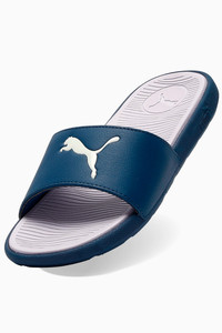 PRODUCT STORY The OG Cool Cat slide gets a sportier aesthetic and a design specifically for the feet of women in this season's stylish iteration. DETAILS - Style: 390963_23 - Color: Persian Blue-Warm White-Lilac Crush - Synthetic-leather upper - Slip-on construction - IMEVA midsole - IMEVA outsole - Embossed PUMA Cat Logo across the foot strap