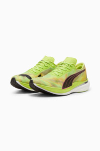 PRODUCT STORY This racing shoe works for nearly all runners, providing pinnacle responsiveness, propulsion, and cushioning in an unbelievable lightweight package. If you're looking for new PR's in upcoming races, this pair is for you. FEATURES & BENEFITS - NITRO™: Elite foam technology providing pinnacle responsiveness in an extremely lightweight package - INNOPLATE: Innovative plate designed to act as a lever for maximum energy transfer at toe-off - PUMAGRIP: Rubber for multi-surface traction and an effortless run. - MONO MESH: Premium material engineered to be lightweight and breathable, reinforced with PWRTAPE DETAILS - Style: 380088_01 - Color: Lime Pow-PUMA Black-Poison Pink - Maximum cushioning level - Breathable mesh upper - Lace fastening - Heel-to-toe drop: 8mm - Recommended for neutral pronators MATERIAL INFORMATION - Midsole: 100% Synthetic - Sockliner: 100% Textile - Outsole: 85% Rubber, 15% Synthetic - Upper: 80% Textile, 20% Synthetic - Lining: 100% Textile