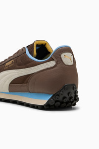 PRODUCT STORY Easy Rider was born in the late '70s, when running transitioned from the track to the streets. Today, the retro runner returns to the streetwear scene, featuring its classic slim profile and vintage vibes. This timeless silhouette is now available in nostalgic colors with an updated midsole. FEATURES & BENEFITS - PROFOAM: Lightweight EVA designed to cushion your landing and propel your next step DETAILS - Style: 403176_01 - Color: Chocolate-Warm White - Width: Regular - Toe Type: Rounded - Fastener: Laces - Main material of upper: Textile with leather details - Heel type: Flat - Lining: Canvas - Comfortable EVA midsole - Rubber outsole MATERIAL INFORMATION - Midsole: 100% Synthetic - Sockliner: 100% Synthetic - Outsole: 100% Rubber - Upper: 68% Leather - cow, 32% Textile - Lining: 52% Textile, 48% Synthetic