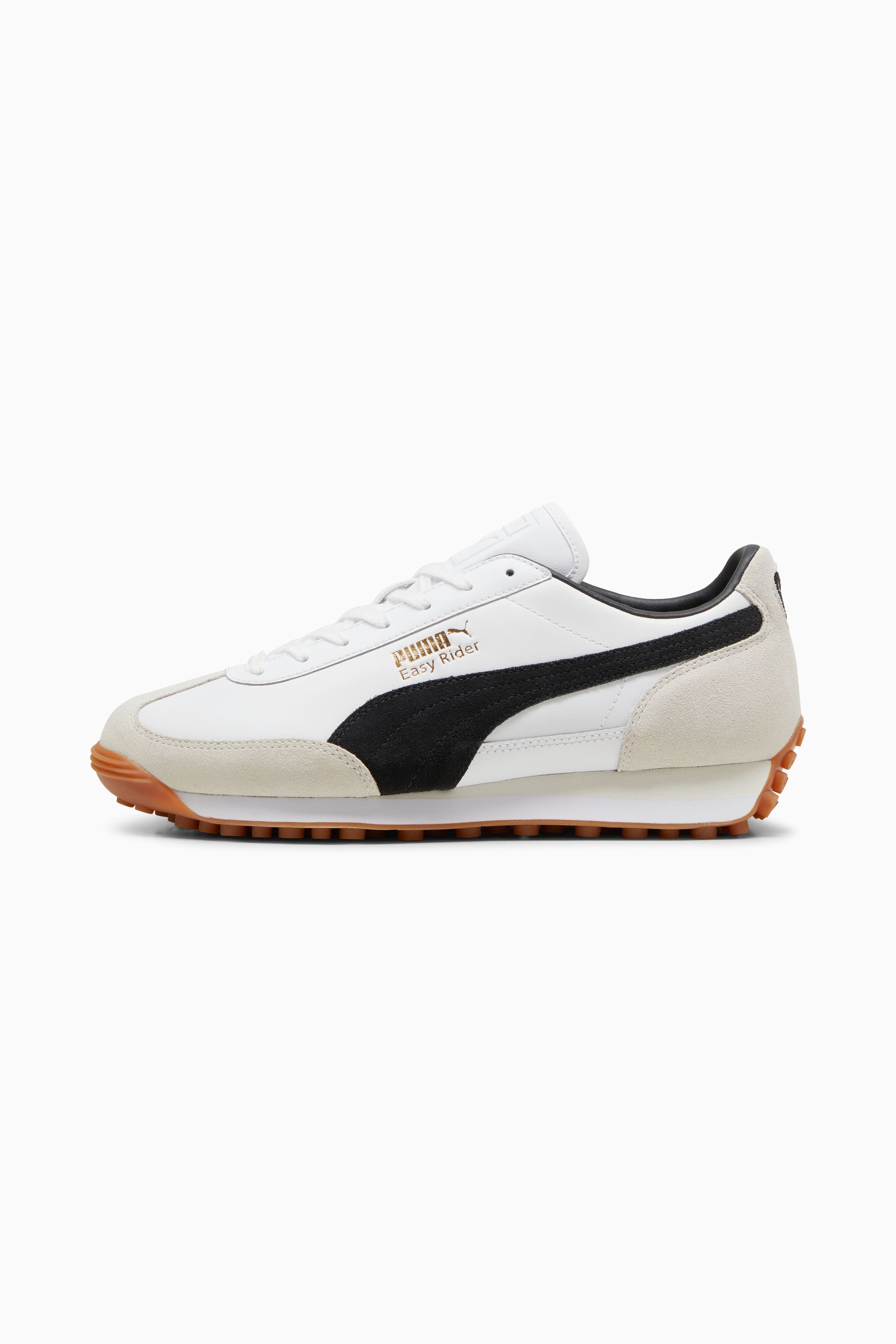 PRODUCT STORY The PUMA Easy Rider was born in the late '70s, when running made its move from the track to the streets. Today it's back with its classic slim profile and vintage vibes intact. This version, featuring a leather upper and suede overlays, is sure to become your go-to for bringing a touch of easy, retro-style to everyday looks. FEATURES & BENEFITS - PUMA's leather products support responsible manufacturing via the Leather Working Group: www.leatherworkinggroup.com - ProFoam: Lightweight EVA designed to cushion your landing and propel your next step DETAILS - Style: 399025_01 - Color: PUMA White-PUMA Black - Regular fit - Leather upper - Suede and synthetic overlays - Lace closure - EVA midsole - Rubber outsole - Suede PUMA Formstrip and heel FOT - PUMA branding details