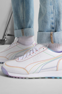 PRODUCT STORY Stride confidently in premium leather from toe to heel. With embossed PUMA branding, a textured leather formstrip, and PROFOAM cushioning, these sneakers combine classic style with modern comfort. Lace up and make every step a statement. Iconic PUMA energy, reimagined. DETAILS - Style: 403527_01 - Color: PUMA White-For All Time Red-Yellow Sizzle - Width: Regular - Toe Type: Rounded - Fastener: Laces - Main material of upper: Leather - Heel type: Flat - Lining: Textile - Cushioning: Low - Heel-to-toe drop: 5mm - Pronation: Neutral MATERIAL INFORMATION - Sockliner: 100% Textile - Outsole: 100% Rubber - Upper: 96.89% Leather - cow, 3.11% Textile - Lining: 100% Textile