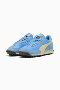 PRODUCT STORY The PUMA Easy Rider was born in the late ‘70s, when running made its move from the track to the streets. Today it's back with its classic slim profile and vintage vibes intact. This version, featuring a textile base and suede leather overlays, is sure to become your go-to for bringing a touch of easy, retro-style to everyday looks. FEATURES & BENEFITS - Leather Working Group (LWG): PUMA’s leather products support responsible manufacturing via the Leather Working Group. www.leatherworkinggroup.com DETAILS - Style: 399028_38 - Color: Team Light Blue-Gold Moon - Nylon base - Suede leather quarter and medial overlays - Suede leather toe and heel overlays - Suede leather eyestay - Textile tongue with woven PUMA branding label - Textile collar lining - Textile sockliner with foil printed PUMA branding - Synthetic leather FOT with debossed and foil printed PUMA Cat Logo - Foil printed PUMA and Easy Rider branding details - Synthetic leather PUMA Formstrip
