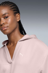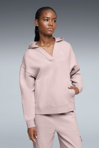 PRODUCT STORY Own the moment with this relaxed-fit hoodie, featuring a jacquard pattern and embroidered PUMA Cat for a subtle edge. Elastic cuffs and hem keep it secure, while the open neckline adds casual vibes. Perfect for coffee runs or cozy meetups, it's your go-to for effortless, everyday style. FEATURES & BENEFITS - Made with at least 30% recycled materials DETAILS - Style: 690348_49 - Color: Mauve Mist - Fit: Relaxed - Main Material: Cotton - V-Neck - Long sleeves - Pockets: Kangaroo Pocket MATERIAL INFORMATION - Hood Lining: 100% cotton - Shell: 64% cotton, 36% polyester - Rib: 97% cotton, 3% elastane