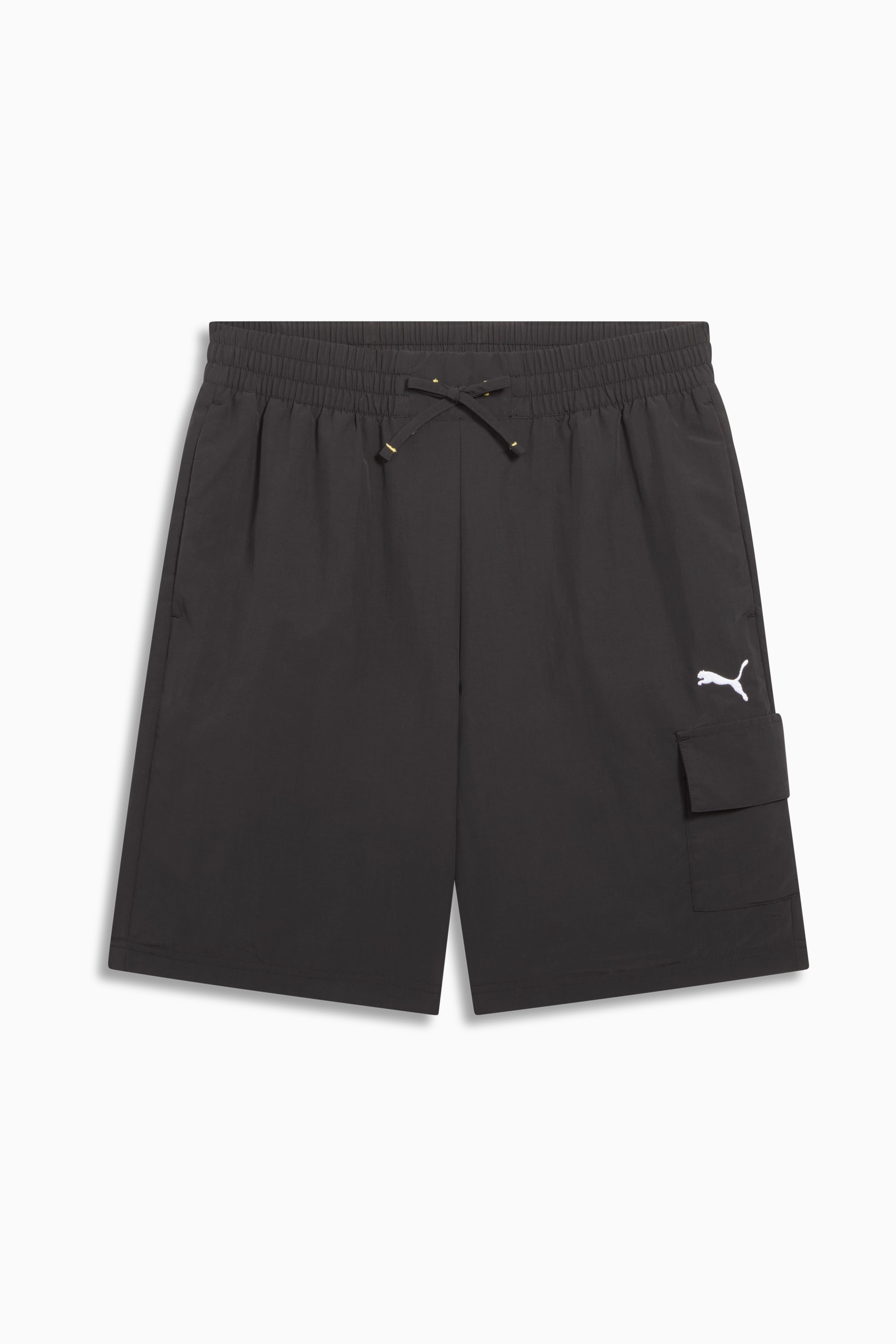PRODUCT STORY Comfort, meet style in these essential PUMA shorts. DETAILS - Style: 686494_01 - Color: PUMA Black - 1 Pocket - Rib waistband with external drawcord MATERIAL INFORMATION - Lining: 100% polyester - Shell: 100% nylon