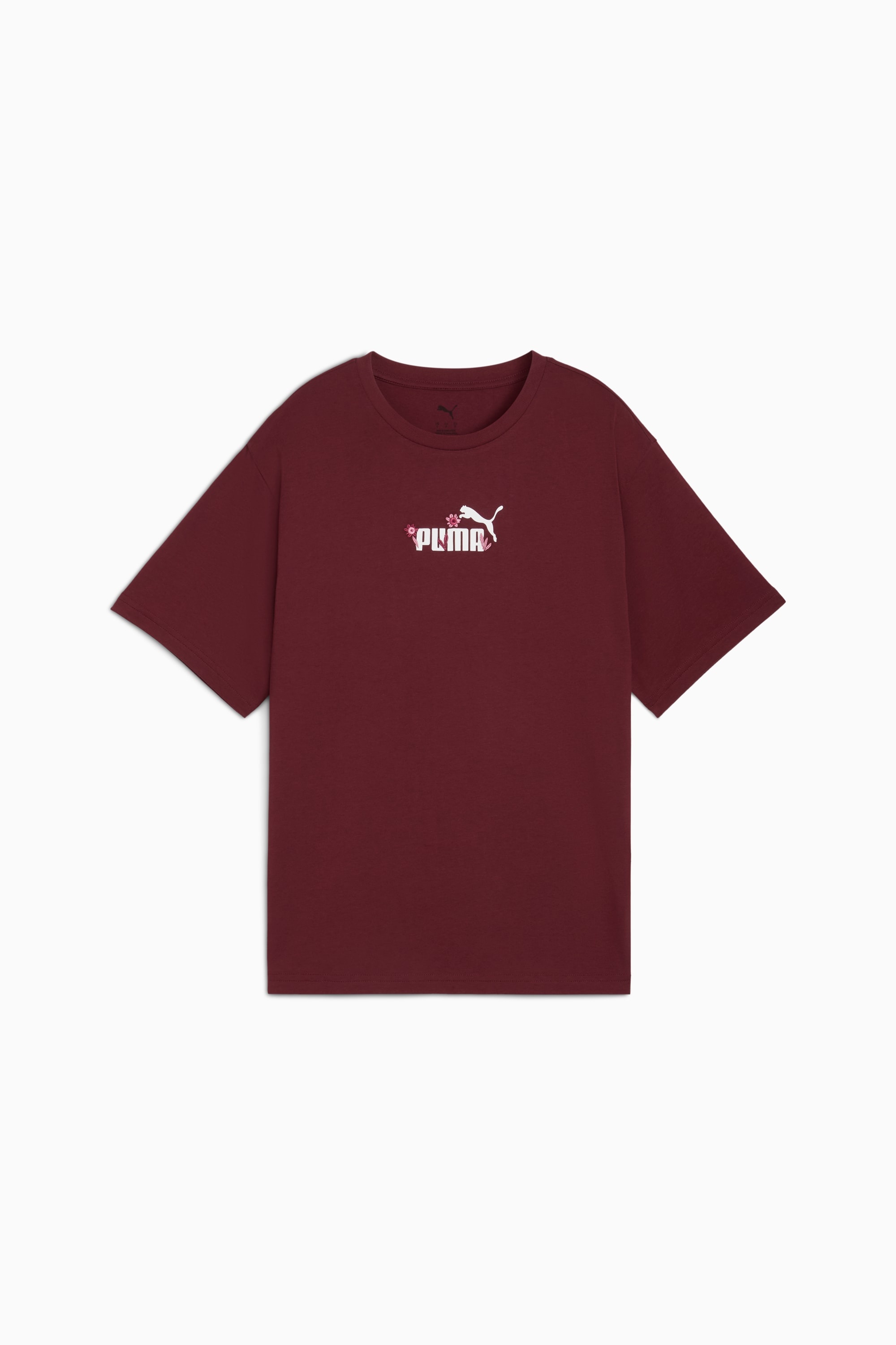 PRODUCT STORY Stylish, comfy, and always on point — PUMA Essentials are designed for laid-back days. Whether you're relaxing at home, grabbing coffee, or out and about, these pieces provide the perfect mix of comfort and style. Simple, versatile, and made to keep you feeling great all day long. DETAILS - Style: 692153_96 - Color: Ruby Shimmer - Fit: Comfort - Main Material: Single jersey - Fabric: Knitted - Neck: Crew neck - Short sleeves - Length: Regular - Shoulder: Drop Shoulder
