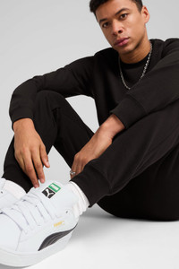 PRODUCT STORY Step into your day with confidence in these PUMA sweatpants. Featuring an elastic waistband with internal drawcords and rib cuffs, they offer a snug fit. The embroidered PUMA No. 1 Logo adds a touch of flair. Perfect for any adventure. FEATURES & BENEFITS - Made with at least 50% recycled materials DETAILS - Style: 682606_01 - Color: PUMA Black - Regular fit - Fleece - Regular length - Medium rise - Side Pocket - PUMA branding details - Ribbed cuffs MATERIAL INFORMATION - UPPER POCKET BAG: 100% cotton - SHELL: 66% cotton, 34% polyester - RIB: 97% cotton, 3% elastane