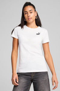 PRODUCT STORY Stay effortlessly stylish in the PUMA Essentials tee with small, simple graphic. FEATURES & BENEFITS - Made with at least 20% recycled cotton. DETAILS - Style: 688377_02 - Color: PUMA White - Short sleeves - Crew neck - Regular fit - Regular length MATERIAL INFORMATION - Shell: 100% cotton - Collar: 70% cotton, 30% polyester