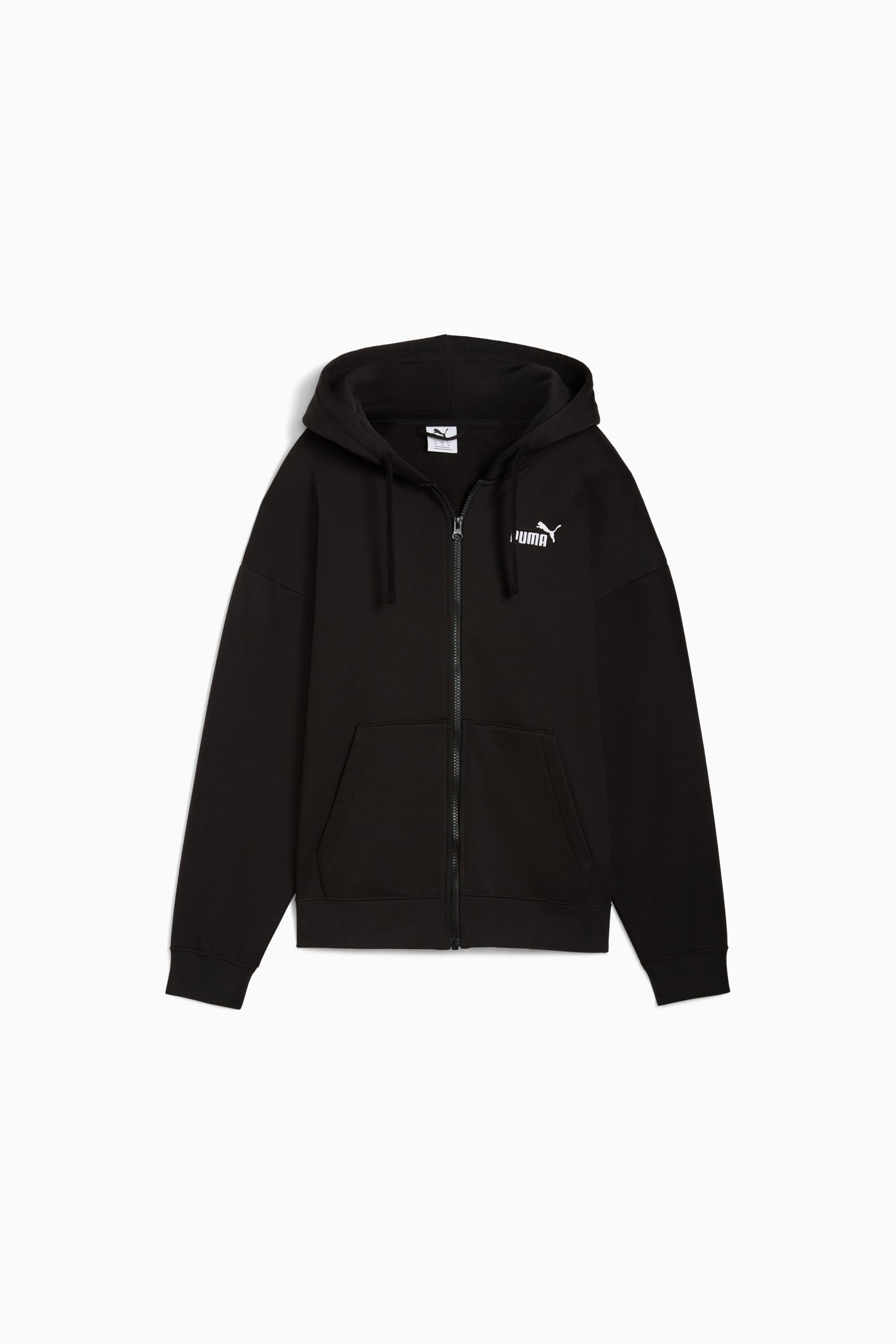 PRODUCT STORY Embrace every moment with this versatile full-zip hoodie. Featuring a sleek PUMA No. 1 Logo, adjustable hood, and convenient kangaroo pocket, it's designed for your active lifestyle. Stay effortlessly cool and ready for anything with PUMA's signature touch. FEATURES & BENEFITS - Made with at least 50% recycled materials DETAILS - Style: 682408_01 - Color: PUMA Black - Comfort fit - Fleece fabric - Regular length - Hood with drawcords - Full zip - Kangaroo Pocket - Ribbed cuffs with hem - PUMA branding details MATERIAL INFORMATION - HOOD LINING: 100% cotton - SHELL: 66% cotton, 34% polyester - RIB: 97% cotton, 3% elastane