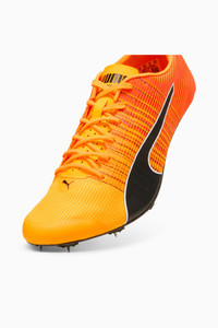 PRODUCT STORY FASTER+ is our offer to the fastest athletes (hey, we're true to our slogan). We're helping you reach maximum speed by engineering sprint spikes that work better, with every evolution of the evoSPEED. If you love a well-oiled engine, you want it to have the hottest wheels. It's with that same logic that we've engineered a full-length carbon fiber plate inside the shoe to make it as lightweight as possible, helping account for every millisecond on the track. FEATURES & BENEFITS - PWRPLATE: Plate engineered to stabilize the midsole while maximizing energy transfer DETAILS - Style: 380034_01 - Color: Sun Stream-Sunset Glow-Puma Black - Lightweight grip with 8 permanent pins - Single peace Ultraweave elite upper, with carbon fiber threads - Lace closure - Lightweight and breathable sockliner - Carbon fiber plate for added propulsion MATERIAL INFORMATION - Midsole: 100% Synthetic - Sockliner: 100% Textile - Outsole: 100% Synthetic - Upper: 70% Textile, 30% Synthetic - Lining: 100% Textile