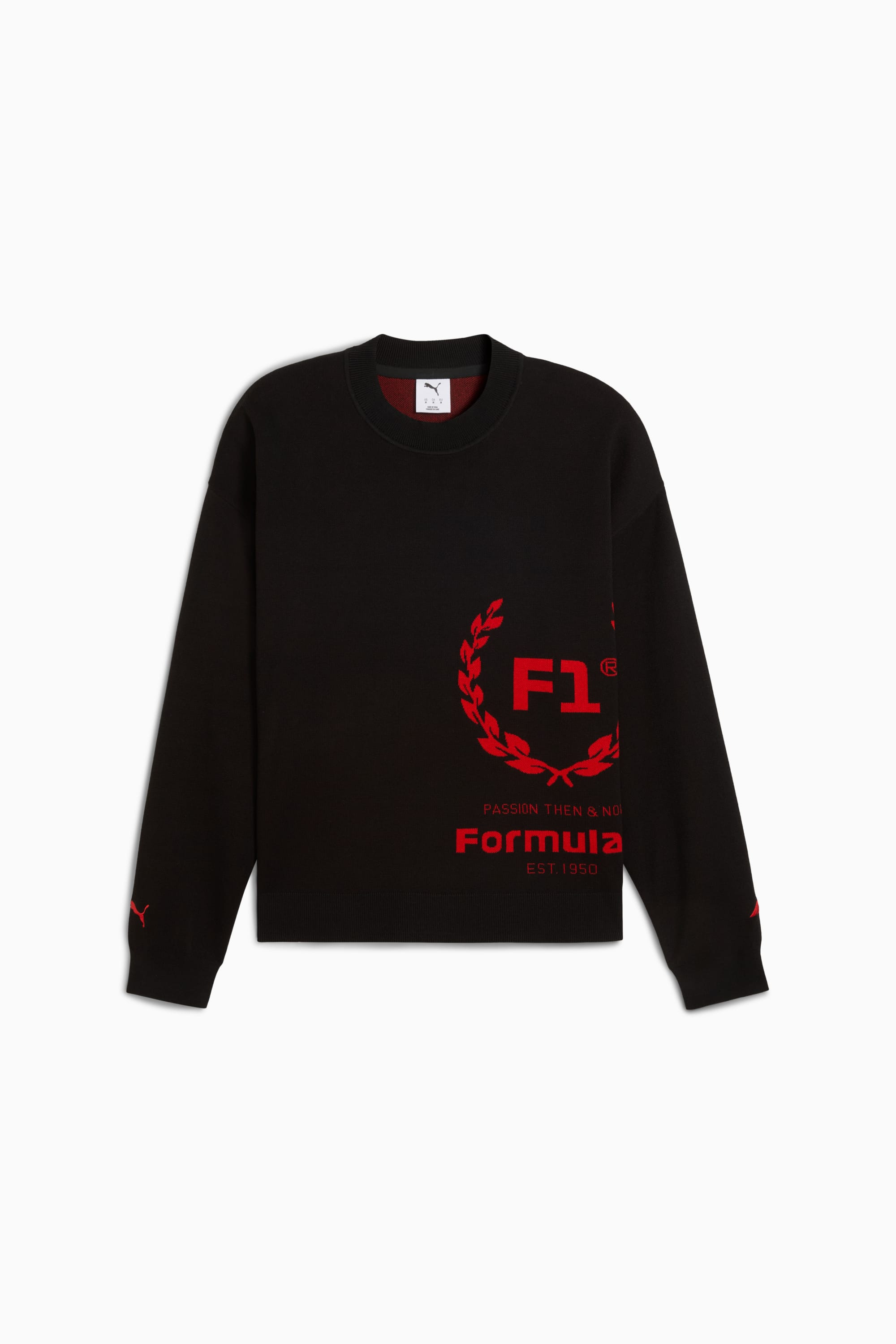 PRODUCT STORY A milestone worth the noise: Formula 1® turns 75. And because legends never slow down, PUMA and FORMULA 1® are celebrating the high-octane journey with a collection that knows how to keep up. 75 years on, faster has never looked better. Race on. FEATURES & BENEFITS - Made with at least 30% recycled materials. DETAILS - Style: 632671_01 - Color: PUMA Black - Fit: Regular - Main material type: Sweater - Long Sleeves - Crew neck - Embroidered graphic MATERIAL INFORMATION - Shell: 60% cotton, 40% polyester - Rib: 58% cotton, 38% polyester, 3% nylon, 1% elastane