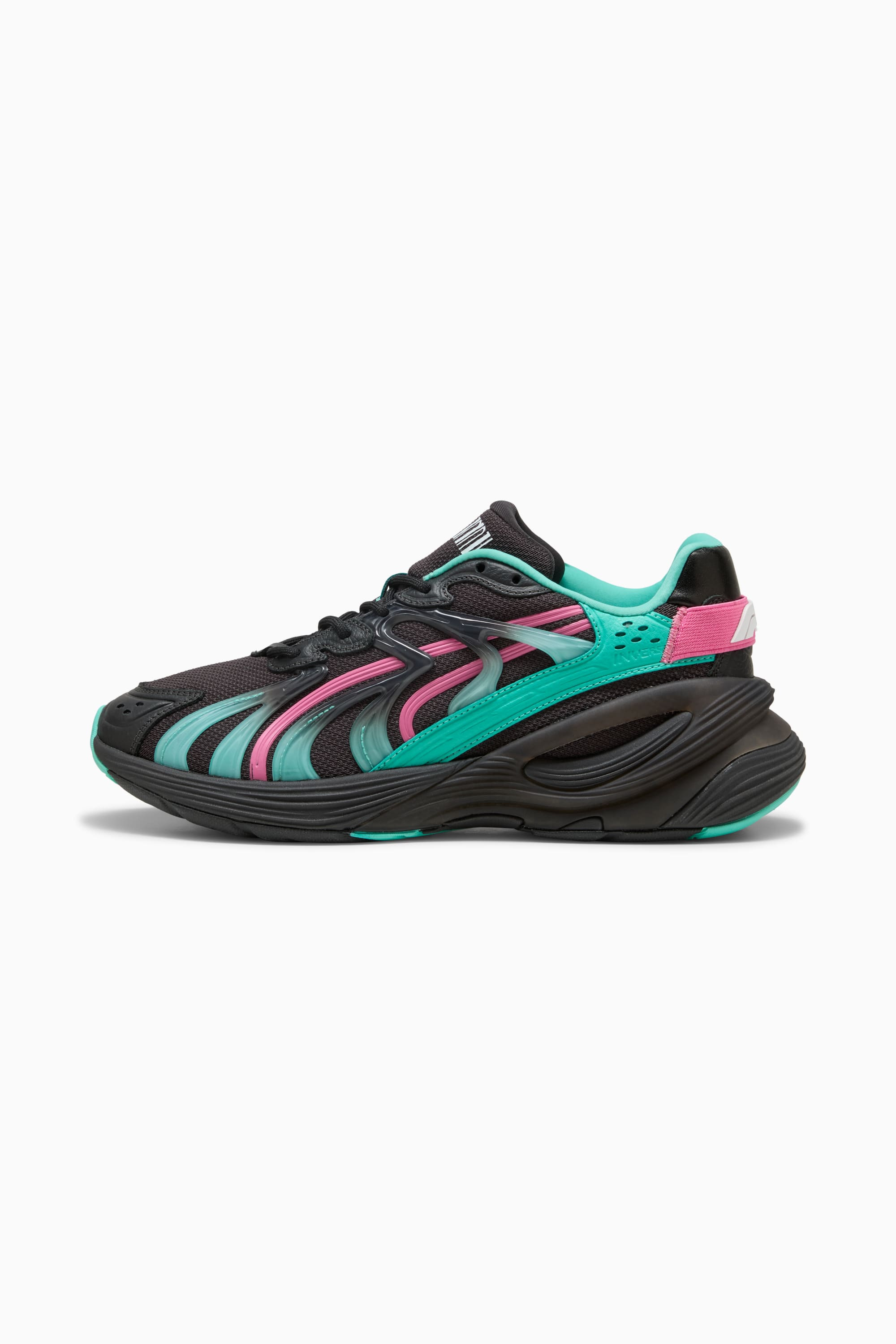 PRODUCT STORY Inspired by the thrill of speed and the Miami race, the Inverse blends innovation with heritage. This sneaker captures the essence of pushing boundaries, enhanced by Artificial Intelligence and refined with a human touch. Its unique design features an organic language on the upper, complemented by a cage and midsole TPU for added distinction. Step-in comfort is elevated with PUMA's ProFoam Lite midsole, while premium leather, suede overlays, and mesh add a touch of luxury to the overall aesthetic. FEATURES & BENEFITS - ProFoam Lite: Extremely lightweight EVA designed to cushion your landing and propel each step - Running System: PUMA's comfortable cushioning technology celebrates the reinvention of a unique moment and movement in culture DETAILS - Style: 309016_01 - Color: Flat Dark Gray-Aquatic - Regular width - The upper features premium leather and suede overlays, mesh details and branding elevation - Lace closure - Cushioning midsole for ultime comfort - F1® and PUMA branding details MATERIAL INFORMATION - Midsole: 100% Synthetic - Sockliner: 100% Textile - Outsole: 100% Rubber - Upper: 50.20% Textile, 28.64% Synthetic, 21.16% Leather - cow - Lining: 100% Textile