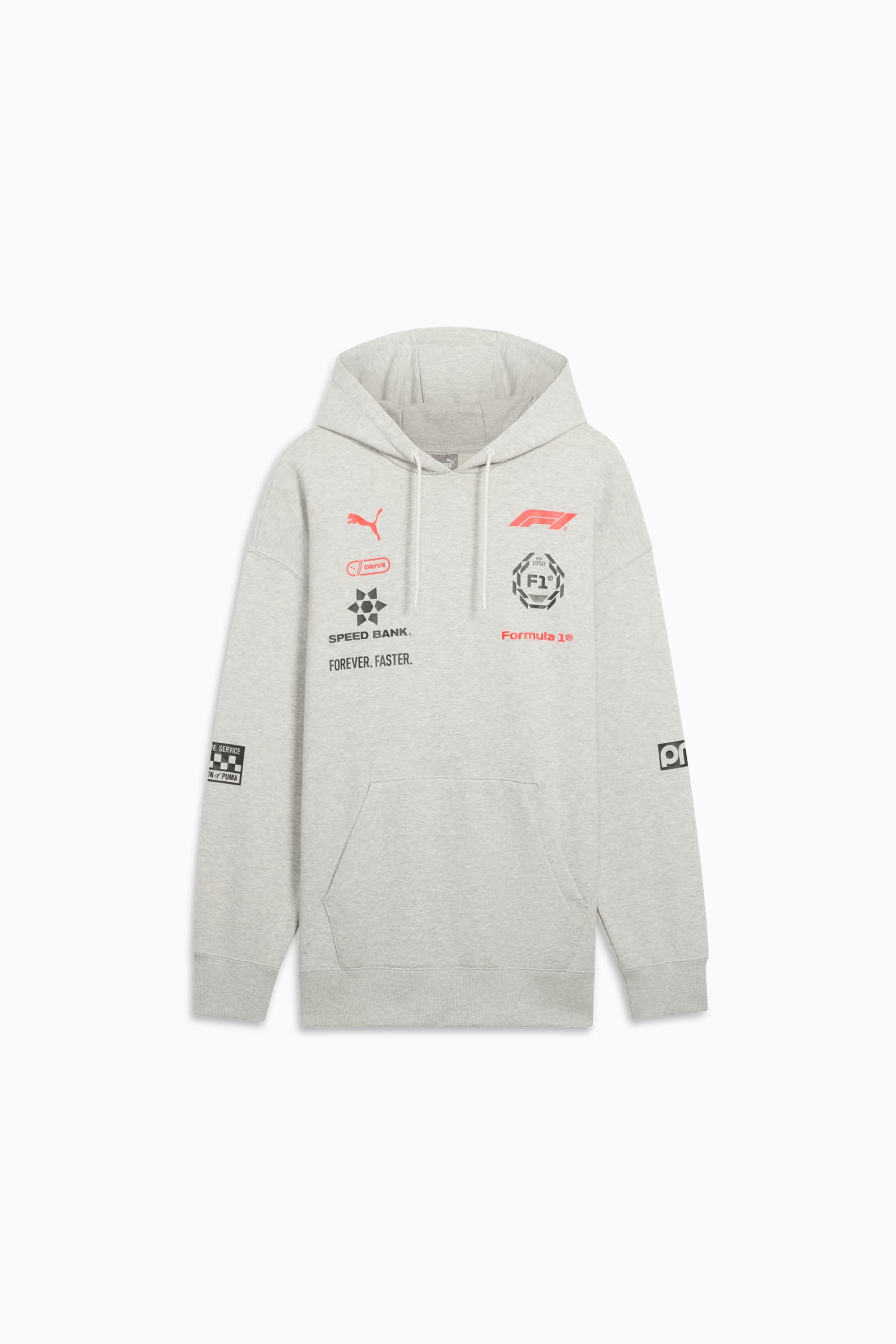 PRODUCT STORY Rev up your style with our F1® Racing Hoodie. Featuring a relaxed fit and bold graphics, this streetwear silhouette brings high-energy vibes. Complete with the iconic F1® and PUMA Cat logos, it's your go-to for standout looks and effortless cool. DETAILS - Style: 632244_01 - Color: Light Gray Heather - Relaxed fit for all-day comfort and a streetwear-inspired silhouette - Long sleeves, soft, cosy material and kangaroo pocket for added functionality and warmth - 330 gsm, French terry - Features the iconic F1® logo for a bold, motorsport-enthusiast look - Loud graphics and PUMA Cat logo bring energy and a motorsport-inspired style MATERIAL INFORMATION - HOOD LINING: 100% cotton - SHELL: 100% cotton - RIB: 96% cotton, 4% elastane
