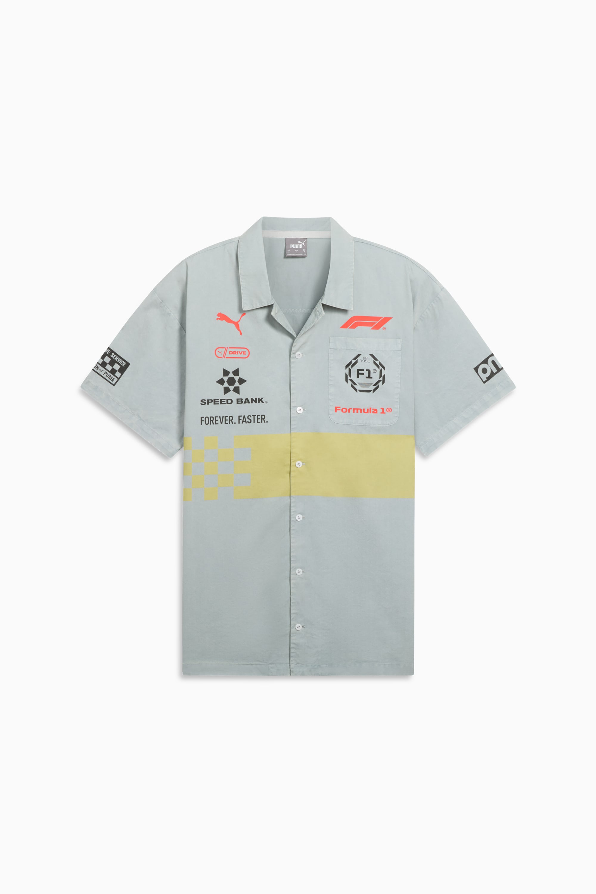 PRODUCT STORY Rev up your style with our F1® Racing Shirt. Featuring a streetwear silhouette, bold graphics, and iconic F1® and PUMA Cat logos, this shirt brings high-octane energy to your wardrobe. Perfect for those who live life in the fast lane. DETAILS - Style: 632246_01 - Color: Feather Gray - Regular fit - Short sleeves make this shirt comfortable and suitable for warmer weather - Streetwear silhouette provides a modern, casual look for everyday wear - PUMA Cat logo adds a touch of sportiness and brand identity - Loud graphics and F1 logo bring energy and a motorsports-inspired style MATERIAL INFORMATION - SHELL: 100% cotton
