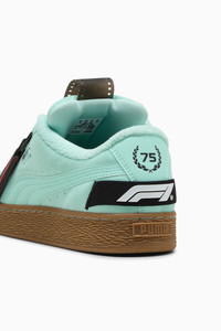 PRODUCT STORY A milestone worth the noise: Formula 1® turns 75. And because legends never slow down, PUMA and FORMULA 1® are celebrating the high-octane journey with a collection that knows how to keep up. 75 years on, faster has never looked better. Race on. FEATURES & BENEFITS - The upper of the shoes is made with at least 20% recycled materials. DETAILS - Style: 308894_02 - Color: Mint Melt-PUMA Black - Fit: Regular - Toe Type: Rounded - Fastener: Laces - Lining: Textile - Heel Type: Flat - Outsole: Rubber MATERIAL INFORMATION - Sockliner: 100% Textile - Outsole: 100% Rubber - Upper: 77.10% Leather - cow, 14.68% Synthetic, 8.22% Textile - Lining: 100% Textile