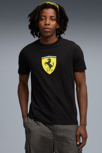 PRODUCT STORY The PUMA and Scuderia Ferrari collection pays homage to motorsport excellence and Ferrari's legendary racing legacy. This selection of shoes, clothing, and accessories blends style, comfort, and performance with the iconic Scuderia Ferrari colors and details, letting you celebrate the Ferrari heritage wherever you are. FEATURES & BENEFITS - Made with at least 20% recycled cotton. DETAILS - Style: 632783_01 - Color: PUMA Black - Fit: Regular - Main material: Single jersey - Neck: Crew neck - Short sleeves - Length: Regular - Scuderia Ferrari and PUMA branding details MATERIAL INFORMATION - Shell: 100% cotton - Rib: 75% cotton, 25% polyester
