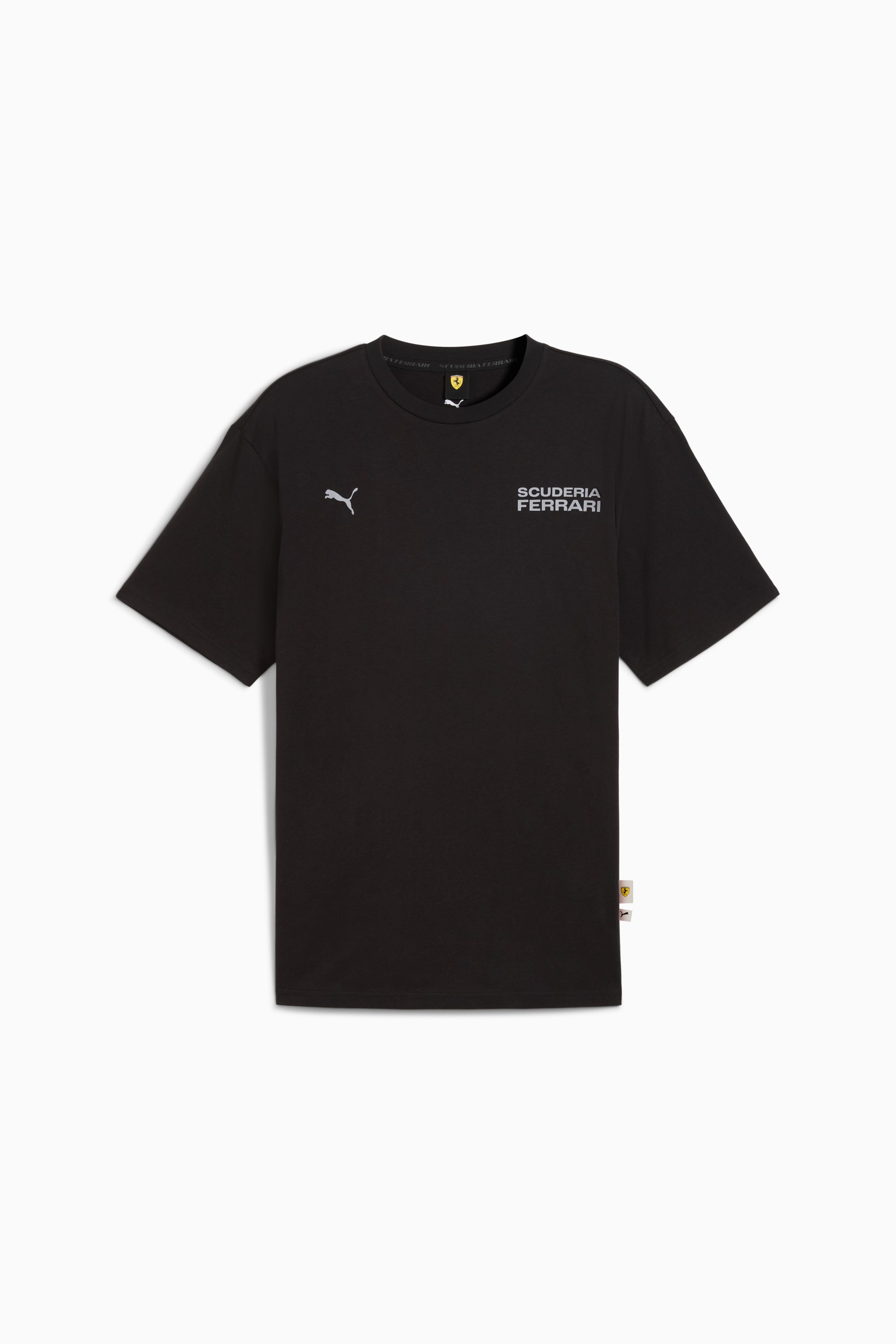 PRODUCT STORY The PUMA and Scuderia Ferrari collection celebrates motorsport excellence and Ferrari's legendary racing heritage. This line of shoes, clothing, and accessories blends style, comfort, and performance with the iconic Scuderia Ferrari colors and details, so you can embrace the Ferrari legacy wherever you go. FEATURES & BENEFITS - Made with at least 20% recycled cotton. DETAILS - Style: 632753_01 - Color: PUMA Black - Fit: Regular - Main material: Single jersey - Neck: Crew neck - Short sleeves - Length: Regular - Scuderia Ferrari and PUMA branding details MATERIAL INFORMATION - Shell: 100% cotton - Rib: 71% cotton, 29% polyester
