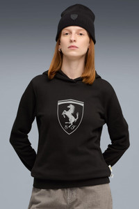 PRODUCT STORY The PUMA and Scuderia Ferrari collection pays homage to motorsport excellence and Ferrari's legendary racing legacy. This range of shoes, clothing, and accessories combines style, comfort, and performance with the iconic Scuderia Ferrari colors and details, so you can carry the Ferrari legacy wherever you go. FEATURES & BENEFITS - Made with at least 50% recycled materials. DETAILS - Style: 632793_01 - Color: PUMA Black - Fit: Relaxed - Main material: Fleece - Hooded - Long sleeves - Length: Cropped - Pockets: Kangaroo Pocket - Scuderia Ferrari and PUMA branding details MATERIAL INFORMATION - Hood Lining: 100% cotton - Shell: 66% cotton, 34% polyester - Rib: 97% cotton, 3% elastane